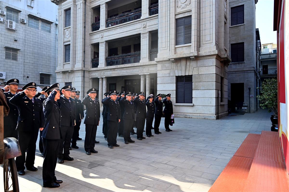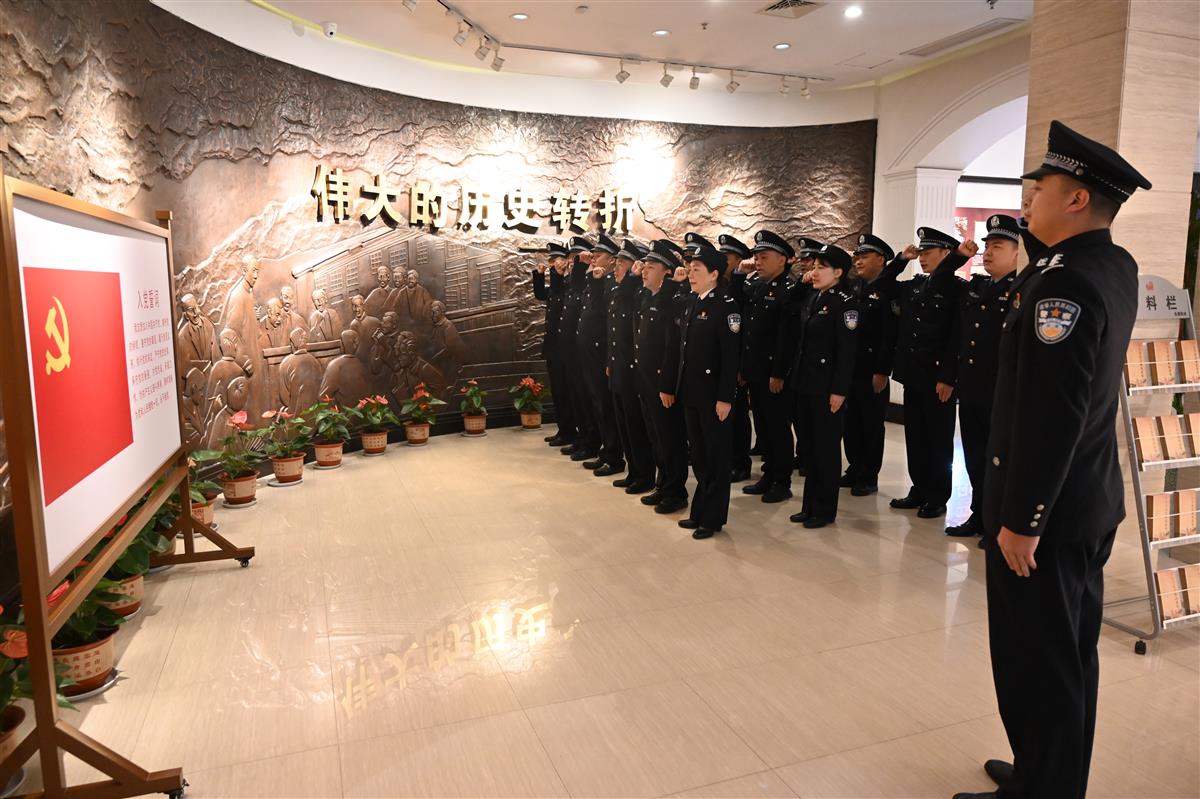 上午10时许,全体民警来到八七会议会址纪念馆,在“伟大的历史转折”浮雕墙前整齐列队。“我志愿加入中国共产党……”宣誓声在场馆中久久回荡。走进场馆,狭窄的楼梯、朴素的会议室,还原着那个风云激荡的夏日。走进展厅,民警们仰头凝视。正是在这里,年轻的中国共产党以巨大的勇气进行自我革命,在危难中开辟新路。“革命先辈抛头颅,洒热血,新时代建设者理应为复兴伟业拼搏奉献。”交通管理大队民警黄念参观后感触颇深。