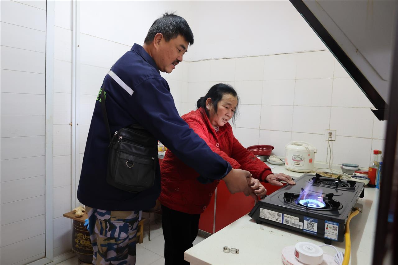 上午10时,在李婆婆家中,城管工作人员与燃气企业技术人员默契配合,拆下老旧破损的灶具,迅速安装上新购置的合格燃气灶具。调试点火成功后,工作人员还手把手向李师傅讲解新灶具的使用方法,细致检查燃气软管、减压阀、燃气报警器“三件套”的安装与使用情况,逐一排查是否存在漏气、安装不规范等安全隐患。