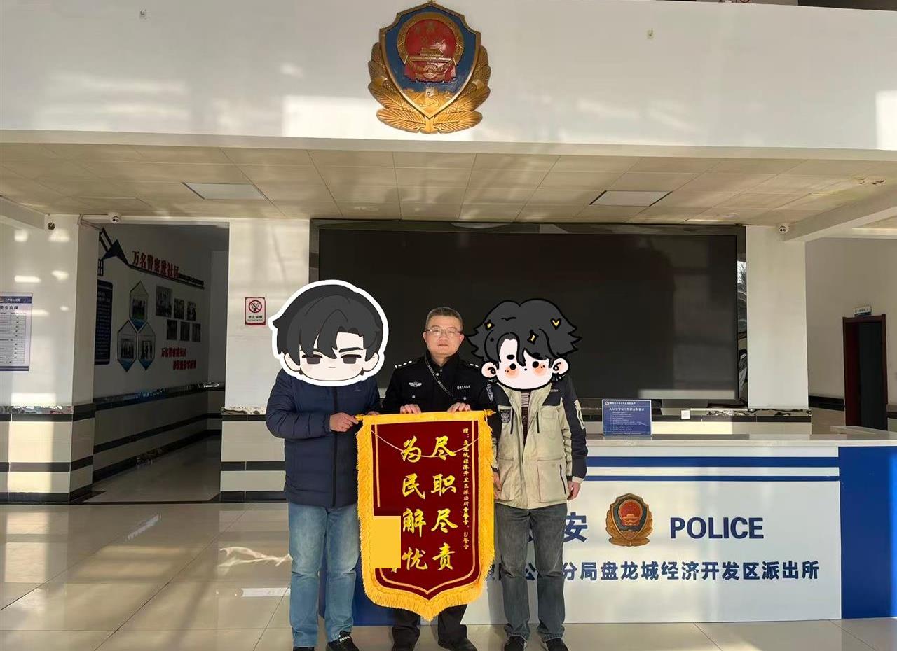 1月8日,魏先生和家人将锦旗送到盘龙城派出所,感谢民警辅警的帮助,让一家人得以重新团圆。