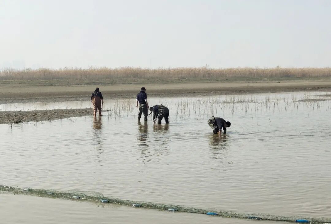 枯水季节长江水位下降,留下几处水凼。执法人员率先下水,“这些坑里黑压压一片,估计有上万条鱼。”执法人员率先探查被困鱼类分布,志愿者配合清除水内杂草树枝,为鱼类开辟回家之路。多次合围后,鱼儿被引导至浅滩区域,通过打捞、转运、放归至长江干流。