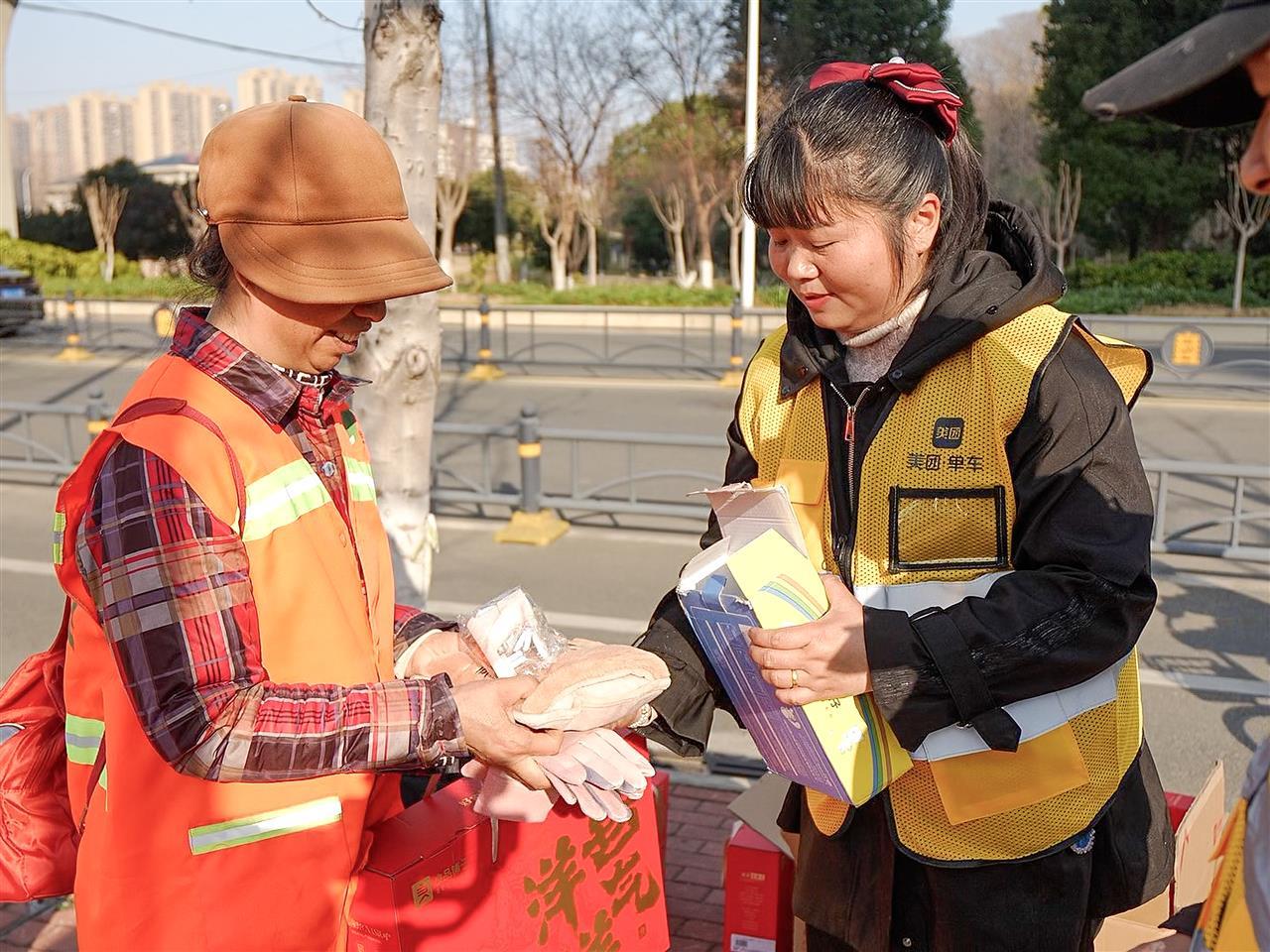 “收到这么贴心的礼物,心里太暖了!”“是啊,手套、暖手宝都特别实用!眼看要降温了,马上就能用上!”武汉市东西湖区七雄路上环卫工人们的欢声笑语,让这个冬天格外暖心。1月15日,武汉市东西湖区城管综合执法大队联合径河街环卫公司和美团单车企业,为坚守一线的环卫工人送上定制“暖冬礼包”,并向市民们发出文明骑行倡议,让温暖与文明在城市街头双向传递。