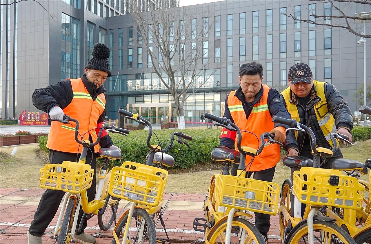 活动现场,最亮眼的莫过于环卫工人与美团单车运维人员并肩作战的身影。大家分工协作、默契配合,有的合力将停放不整齐的单车归置到划线区域内摆放好,有的仔细清理车筐里的纸巾、饮料瓶等零碎垃圾,有的拿着小铲子和除胶剂耐心铲除车身的“牛皮癣”小广告。一番忙碌后,原本零散停放的单车区域变得井然有序,车辆整齐排列在划线区内,车身干净整洁。
