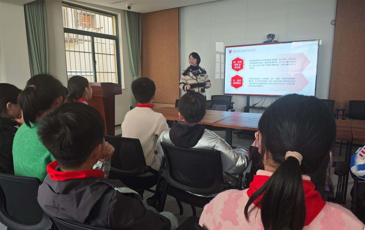 活动中,社区科普教育及环境卫生工作人员担任主讲,通过多个板块进行系统讲解。课程不仅详细剖析了燃放烟花爆竹可能引发的安全风险、人身伤害与火灾隐患,并结合真实警示案例加深理解,还具体介绍了安全燃放的注意事项与应急处理措施。同时,讲解员着重从环境保护角度出发,阐述烟花爆竹燃放对空气质量与社区环境的负面影响,积极引导孩子们树立绿色生活理念,认识到自觉遵守“禁鞭”规定对守护蓝天净土的重要性。