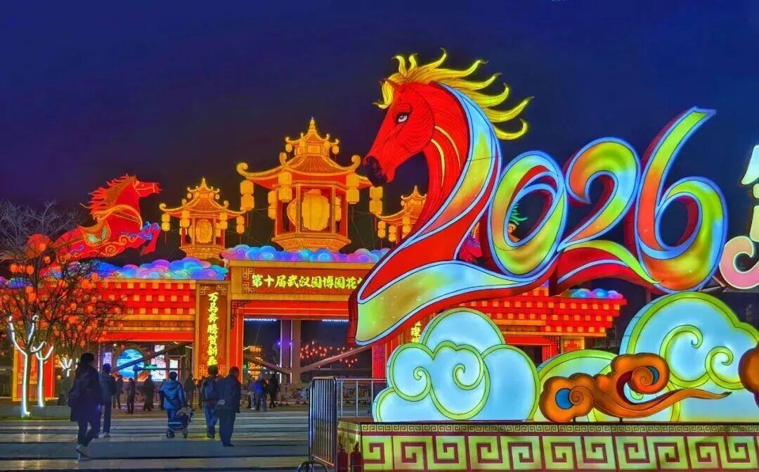 自2016年第一盏花灯点亮以来,园博园灯会已陪伴武汉人走过九个新春,成为一张闪亮的城市文旅名片。今年,第十届盛会全面升级:54天超长展期,横跨小年、春节、元宵与龙抬头;3.2公里沉浸式游线,近70组主题彩灯,规模空前。摄影师的广角镜头下,灯山灯海与园林山水交融,月色与灯影共舞,一场极致视觉之旅已然就绪。
