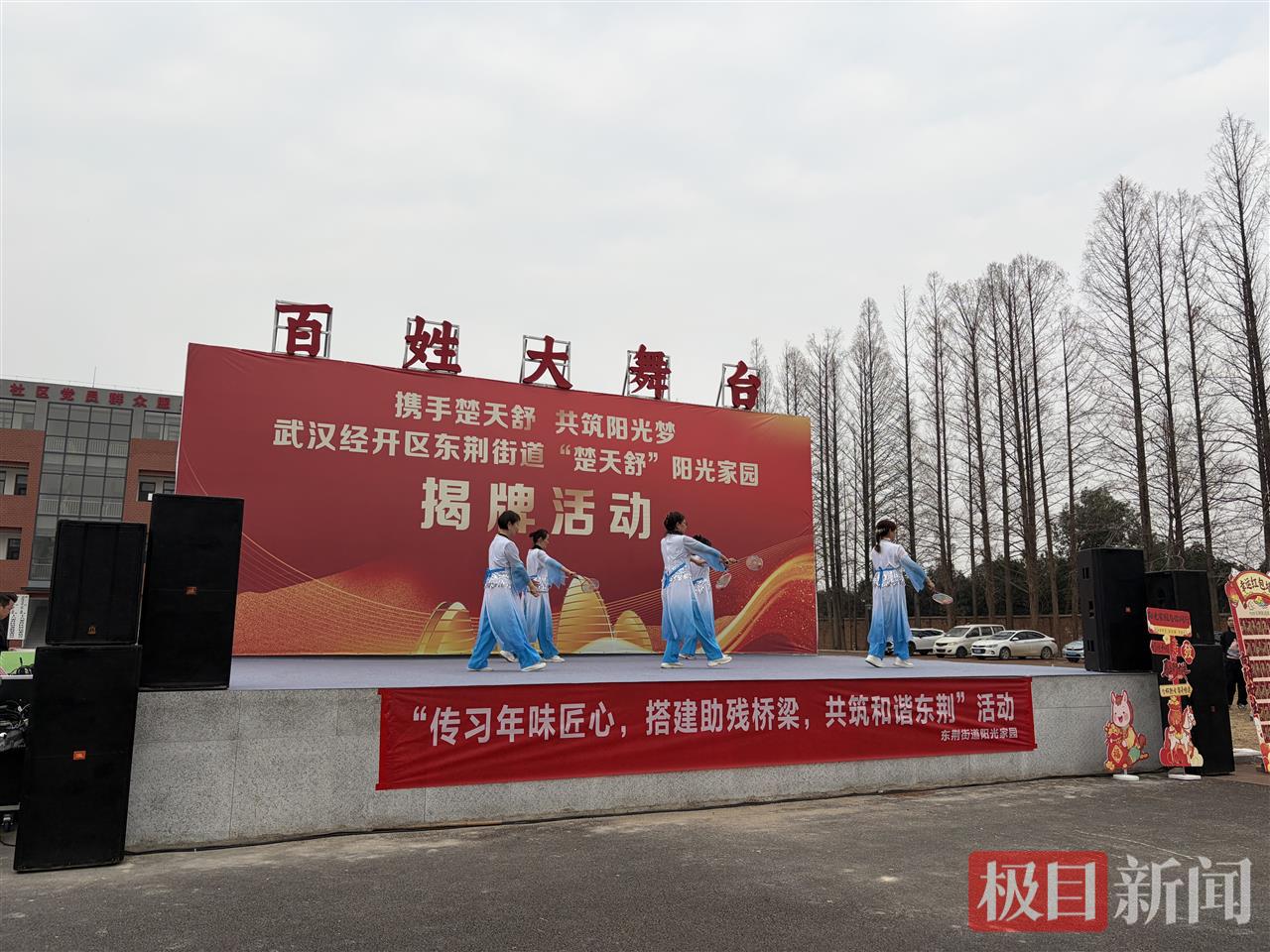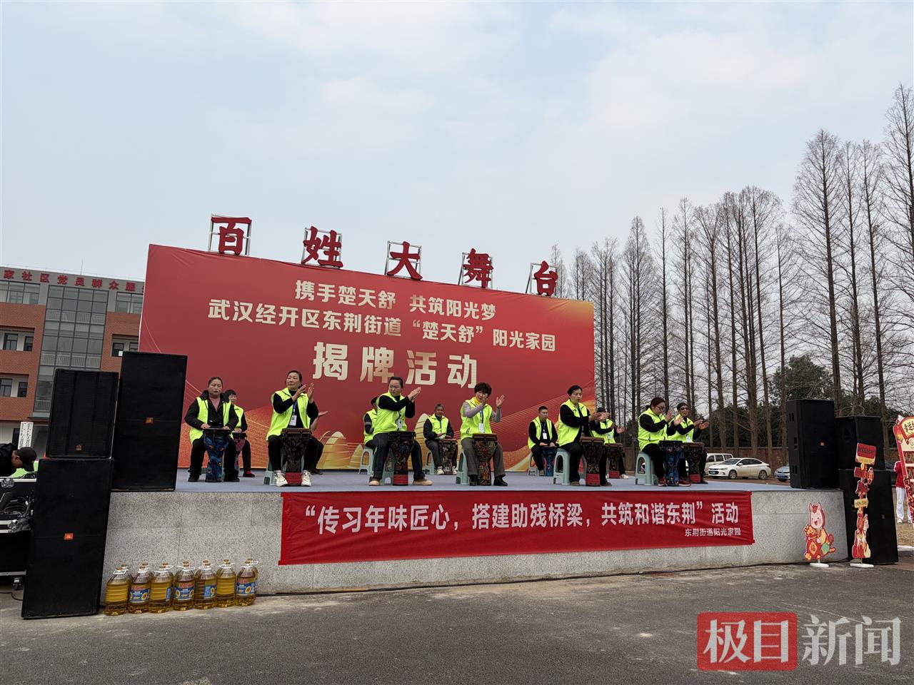 舞龙、非洲鼓、走秀、柔力球……1月16日下午,在武汉经开区东荆街十八家社区党员群众服务中心前的空地上,居民们围坐一起,欣赏由街道居民参与演出的文艺演出。当天,该街道“楚天舒”阳光家园正式揭牌。
