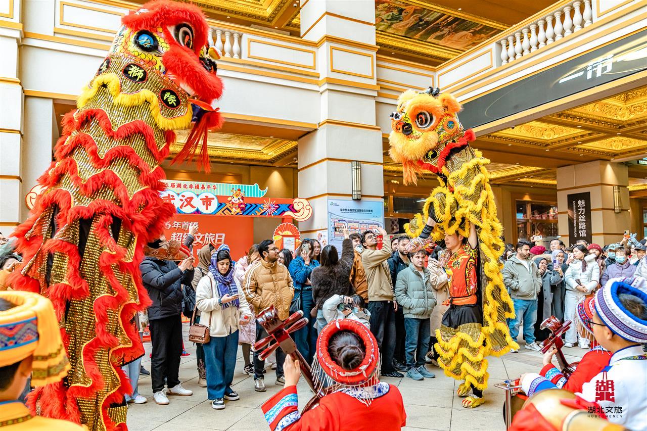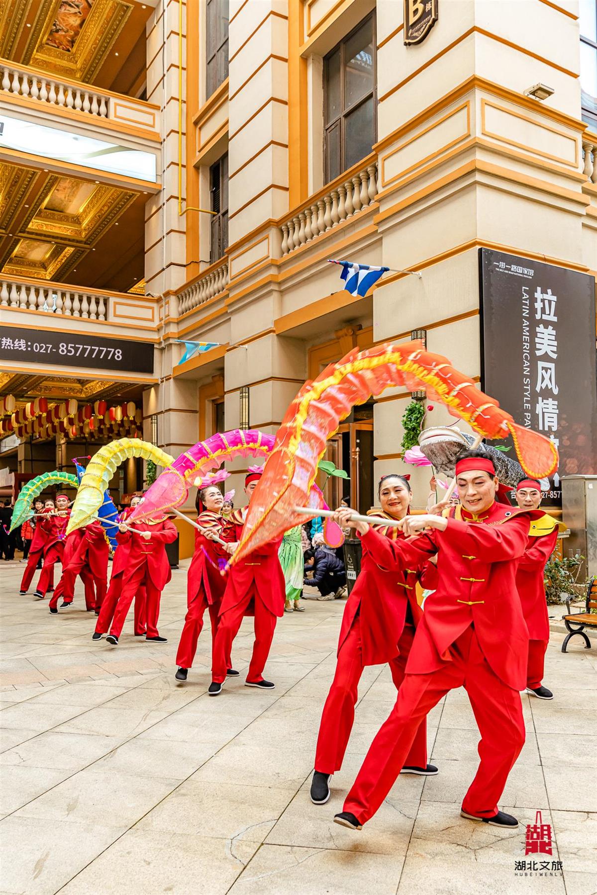 锣鼓喧天庆新春,民俗展演闹市集。1月16日下午至17日上午,2026年首场“知音湖北 超级文旅日”暨第五届湖北非遗嘉年华民俗展演活动在武汉长江新区华中贸易服务区热闹开锣。建始丝弦锣鼓、潜江高台舞狮、潜江草把龙、南漳东巩高跷、郧阳凤凰灯舞、新洲牌子锣等多项荆楚特色民俗项目接连上演,营造喜庆祥和的传统佳节氛围,为市民游客带来了一场极具视觉冲击力的民俗盛宴,让大家在逛市集、购年货的同时,感受浓浓的新春氛围。