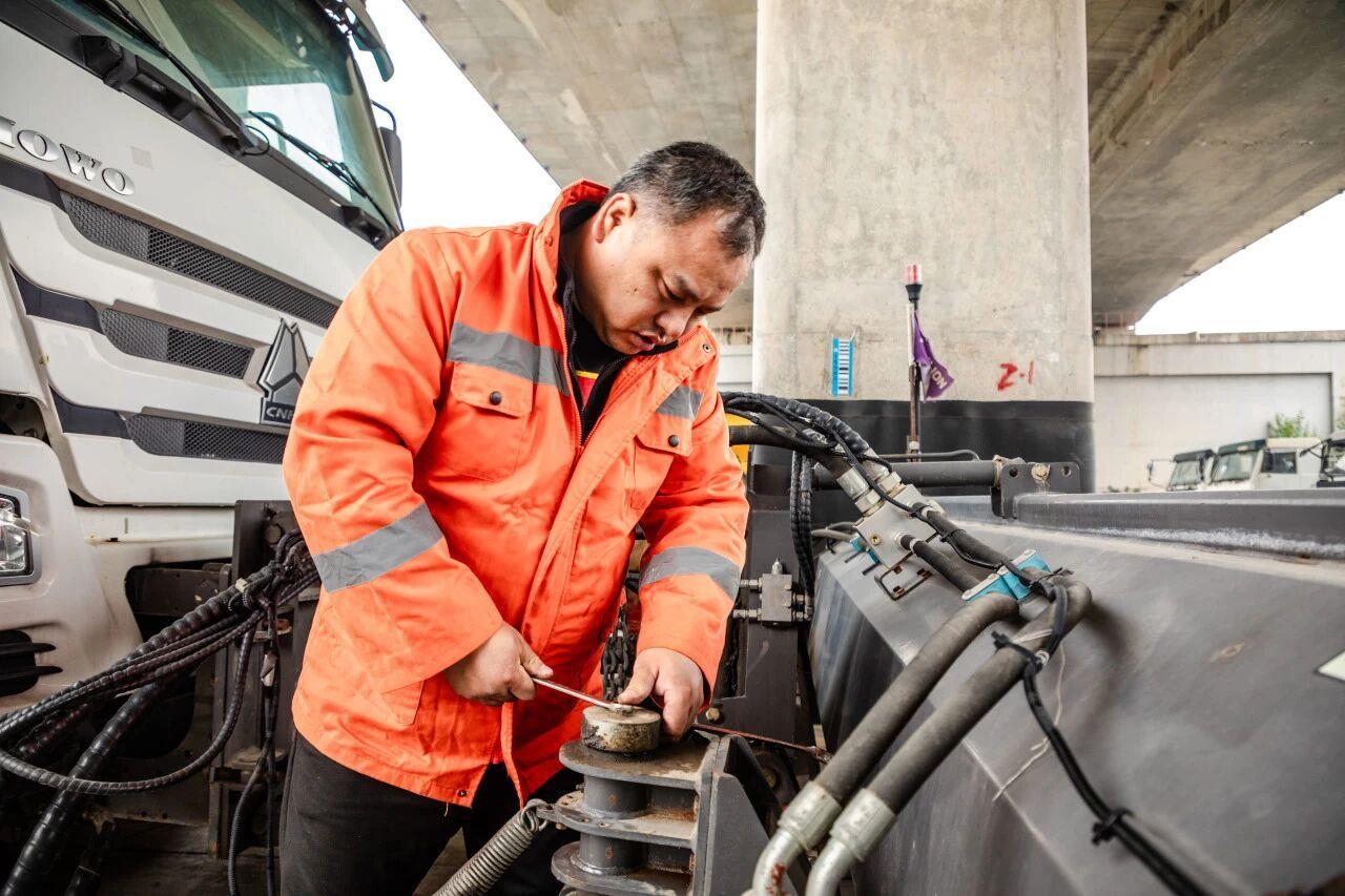 大桥清洁队正在调试除雪机械设备