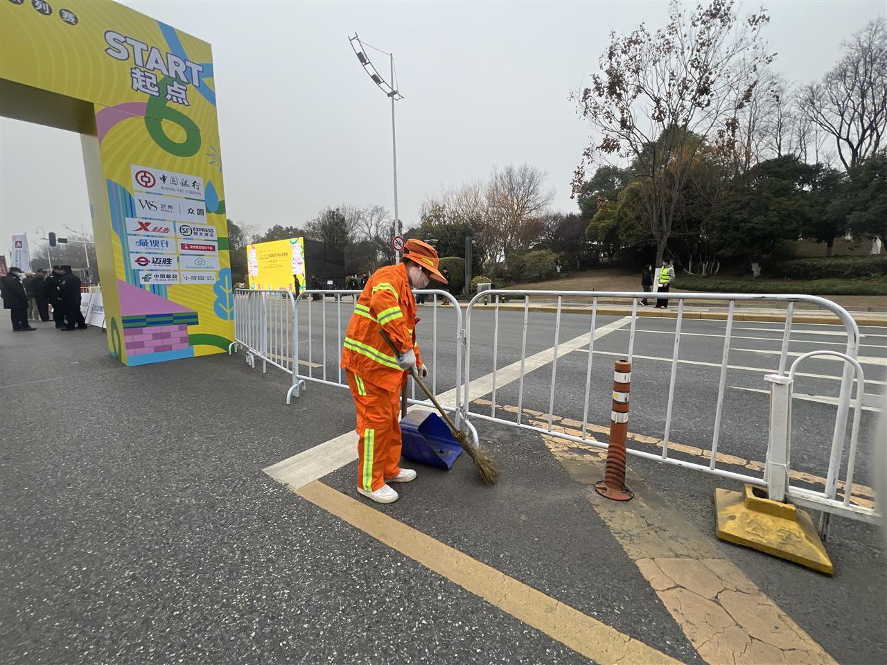 为全面做好赛事环境卫生与秩序维护,青山区城管局统筹执法大队、环卫作业单位等多方力量,实施“全时段覆盖、全路段管控、全流程协同”保障机制。赛事当天,共出动执法及机动巡查人员129名、环卫保洁人员201名,在起点、终点、补给点及沿线重点路段巡回作业,实现“边赛边清、人走场净”。
