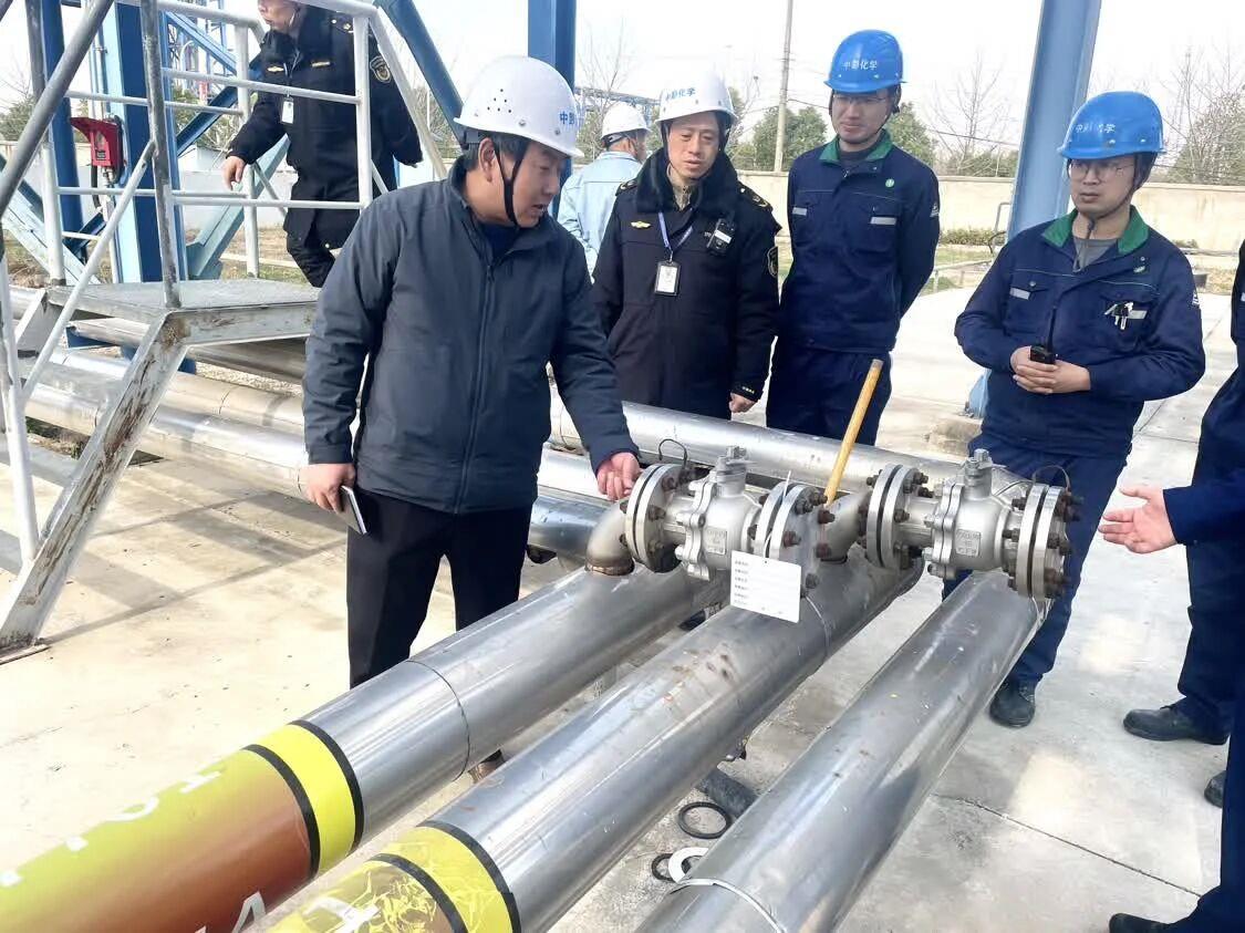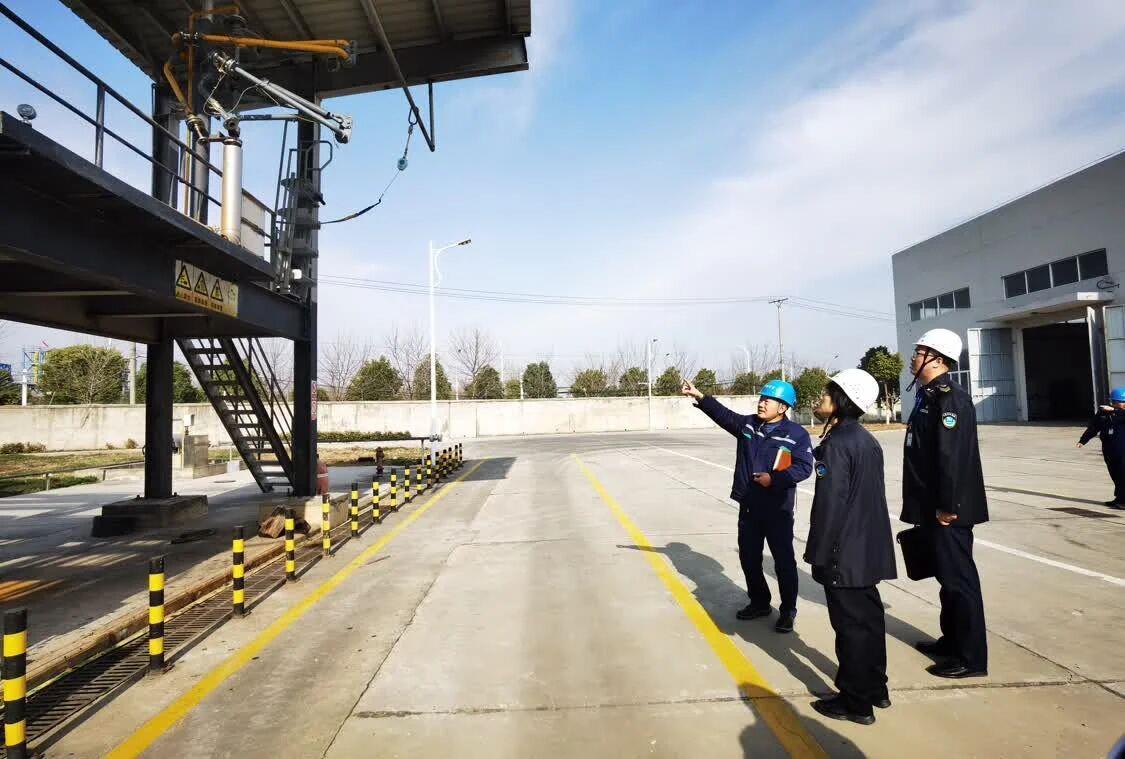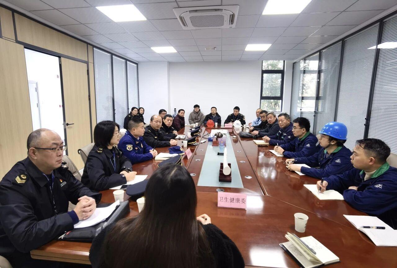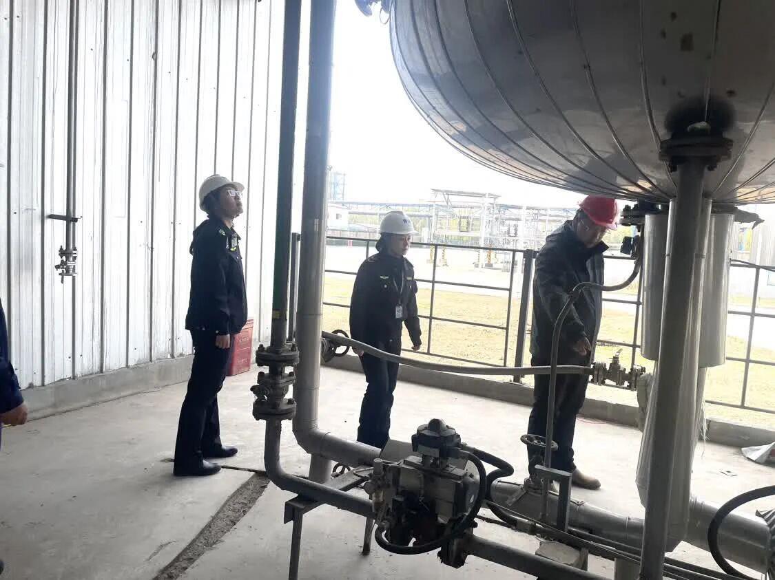 当天,各部门分工明确、同步推进,形成高效联动的检查现场:市应急管理局重点核查安全生产管理、设施设备运行,特别是环氧乙烷储罐区的安全管控;市卫健委聚焦职业病危害告知、职业健康培训记录和防护用品发放情况;青山区市场监督管理局逐项检查特种设备管理台账、人员资质及安全制度落实情况;青山区生态环境局细致查阅环保台账、监测数据,实地查看危废暂存与处置情况;青山区消防救援大队则系统检查消防验收、建筑防火、疏散通道及消防设施运行状态。针对检查中发现的问题,各部门有针对性地提出整改意见。
