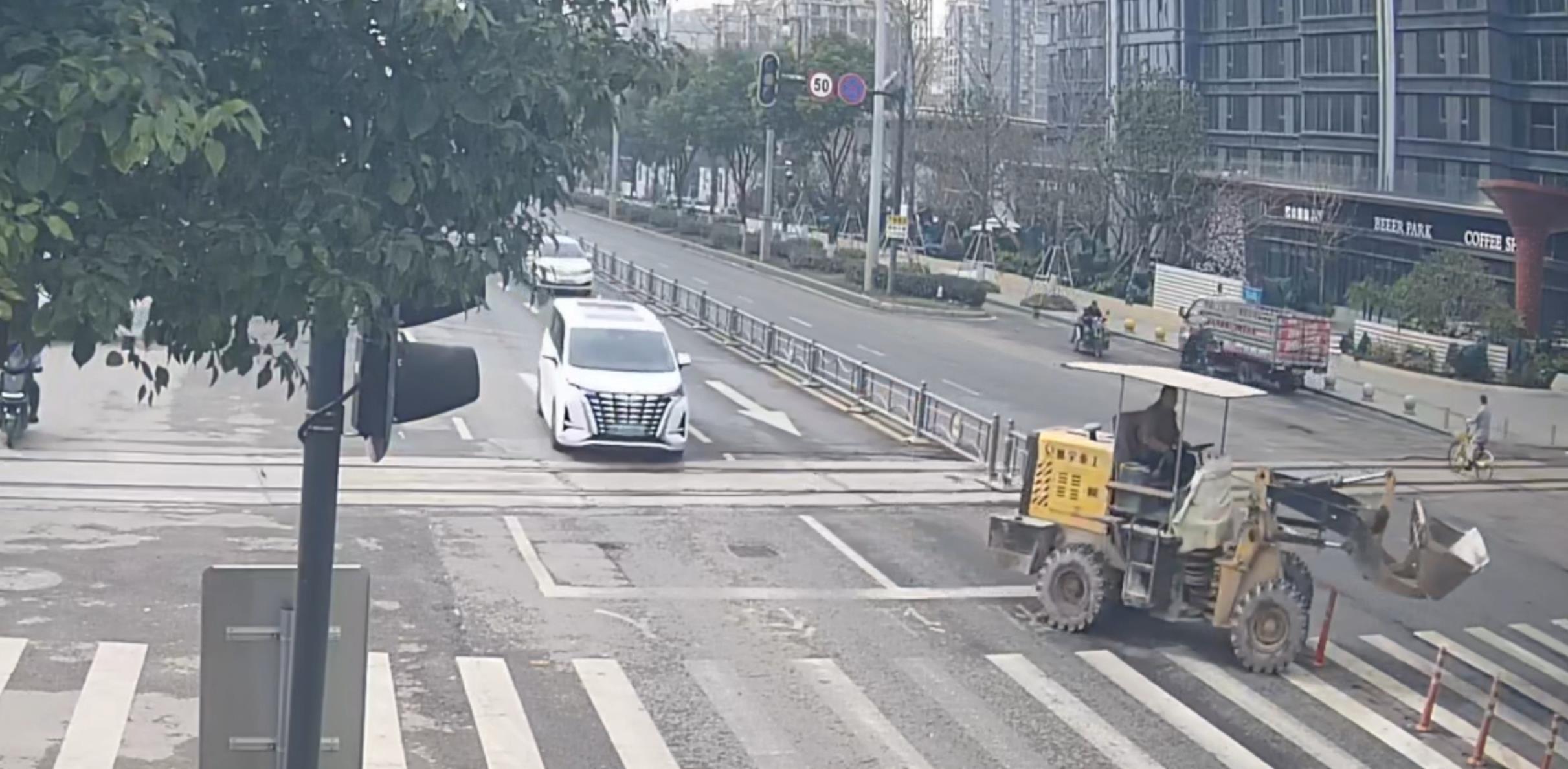 1月5日12时许,汉阳区公安分局交管大队视频巡查专班通过视频巡查发现,一辆无号牌轮式专用机械车沿鹦鹉大道南向北行驶至鹦鹉洲社区附近时,违规在人行横道线处违法调头,致使路面柔性隔离柱受损、丧失原有防护功能。