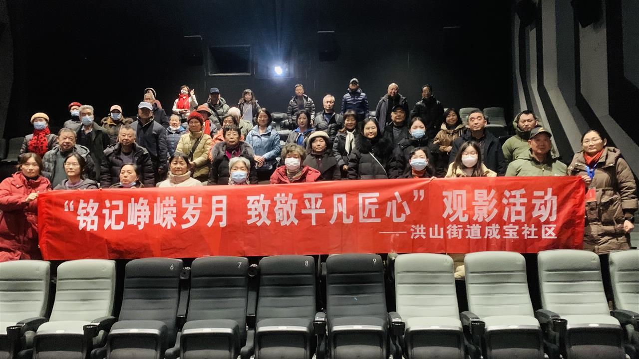 为加强新时代爱国主义教育,宣传诚信践诺美好品德,1月5日,武汉市洪山区洪山街道成宝社区组织60名社区国企退休人员开展“铭记峥嵘岁月,致敬平凡匠心”观影活动,观看抗战兼诚信主题电影《得闲谨制》。