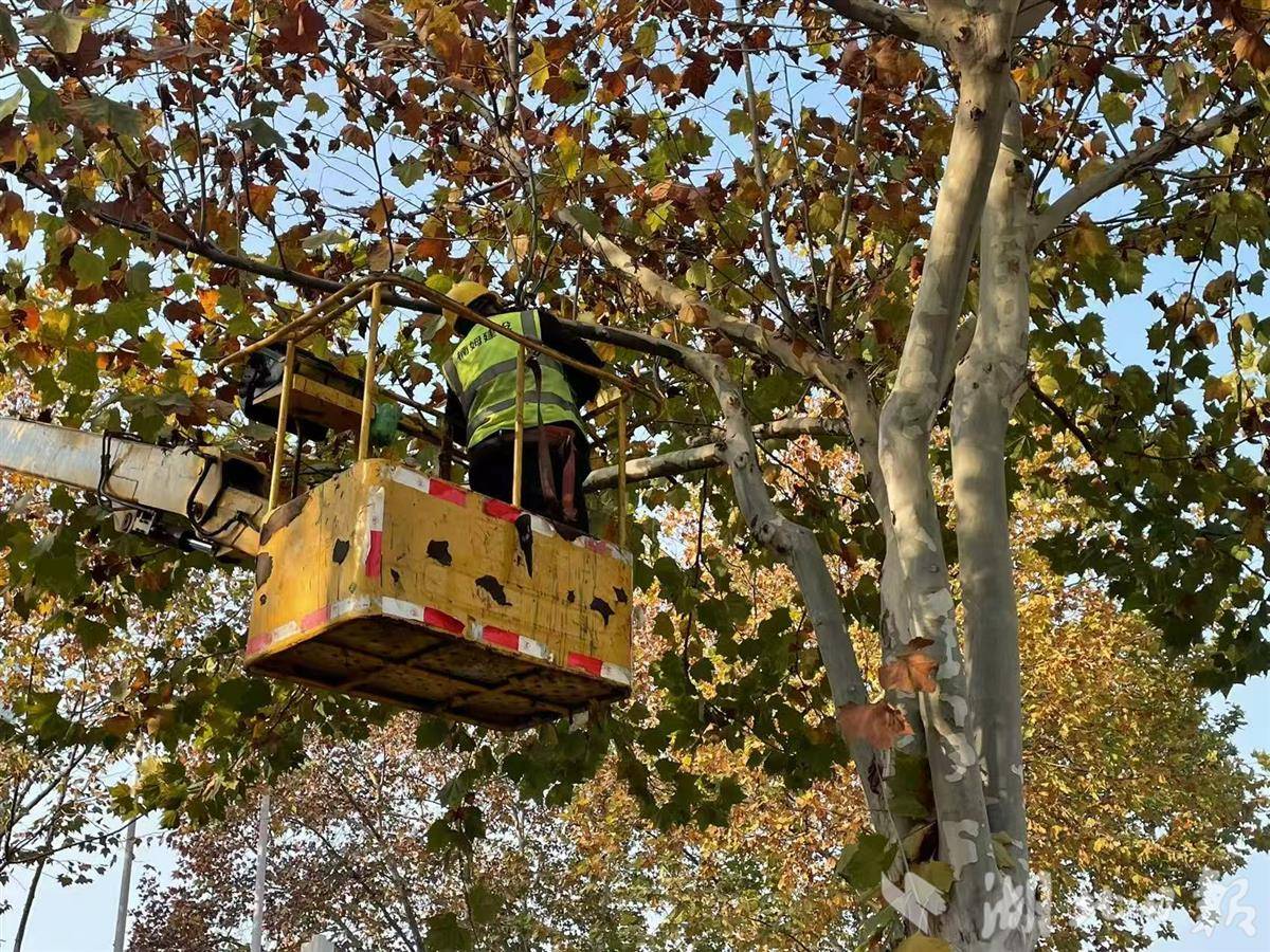 武汉市园林局进行行道树修剪,从源头减少雨雪冰冻天气可能造成的倒树断枝风险。(受访单位供图)