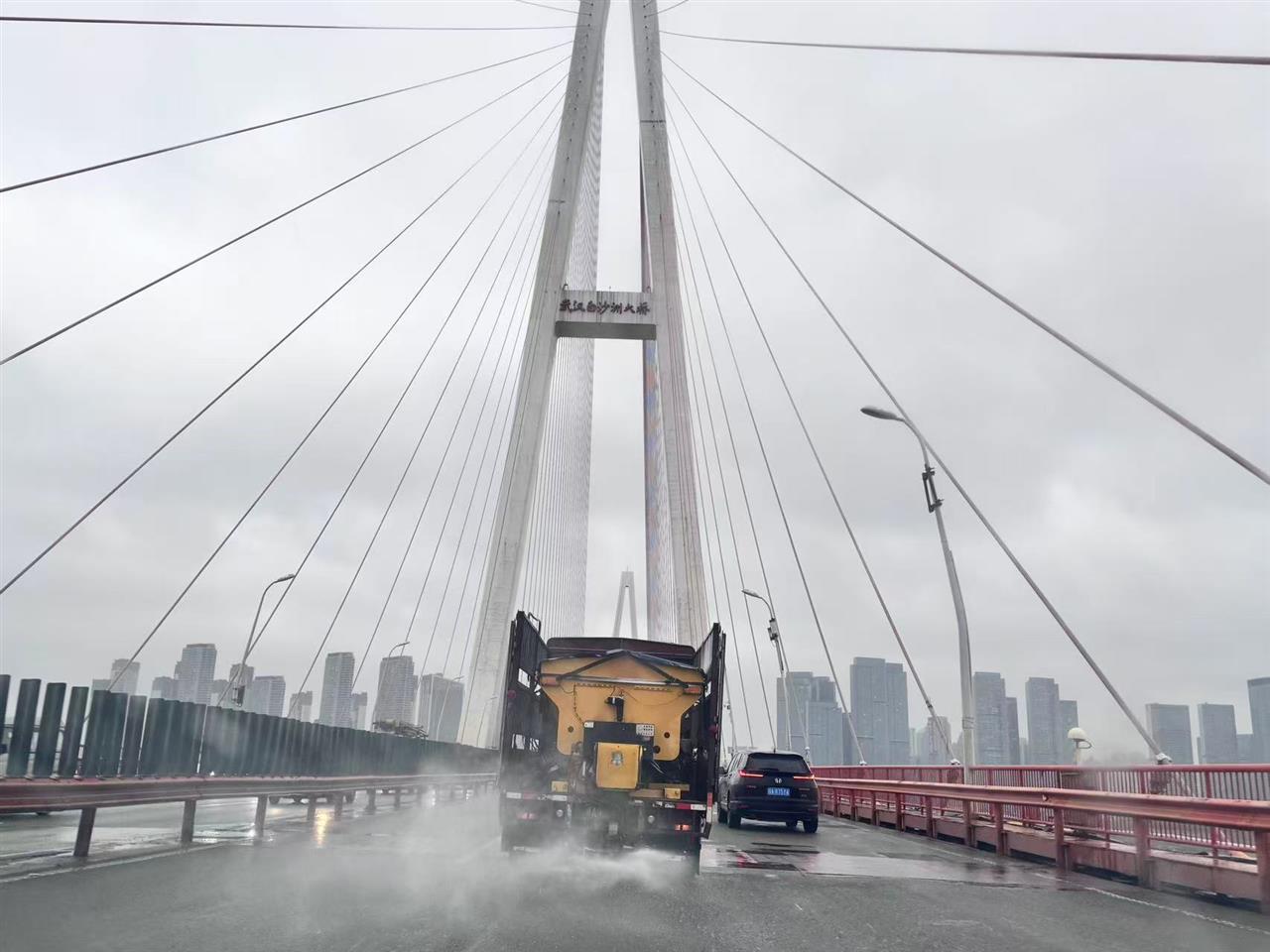 截至20时30分许,武汉城投集团城运集团公司管辖的二七大桥、长江二桥、鹦鹉洲大桥、月湖桥、知音桥、古田桥等六座桥梁全部开始预撒作业,保持道路安全畅通。