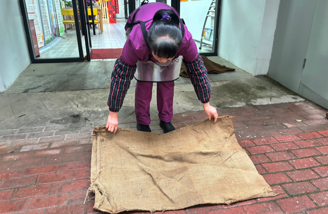 长江康养126社区颐养中心工作人员用防滑垫覆盖道路。通讯员供图