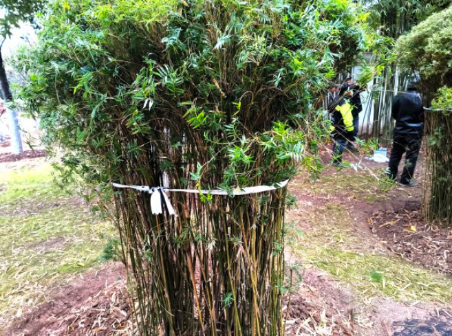 除了保障市民安全,各公园纷纷为植物采取防护措施。龟山公园、沙湖公园对易被积雪压弯的竹子进行适度修剪,并用绳索将竹子上部捆扎,宛如为竹子戴上“发箍”,防止倒伏或折断。在紫阳公园,5株新栽植的红枫树穴被覆盖上塑料地膜,以提高地温、防止冻根。