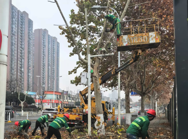 园林工人在南湖大道修剪树枝。通讯员供图