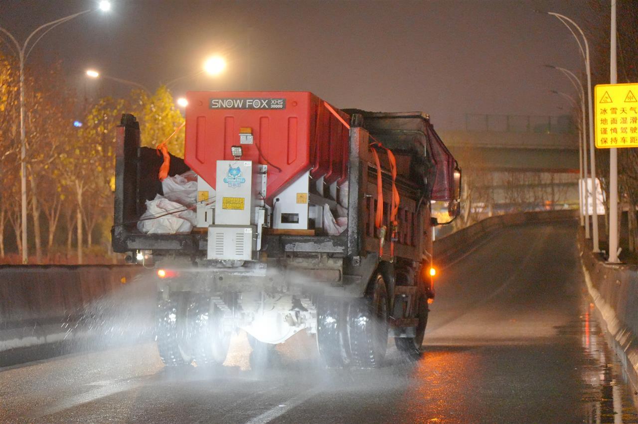 “白天我们已经对包保的几条重点道路完成了巡查。夜里气温低,匝道、桥梁这些地方最容易结冰,必须抢在前面预防。”东西湖区服投集团公共设施运营管理公司副经理韩一新说道。据了解,一台撒布机可满载4吨融雪剂,能连续作业90多分钟,覆盖10公里路段,这样的科学布撒,正是基于平台对易结冰点位的精准研判。