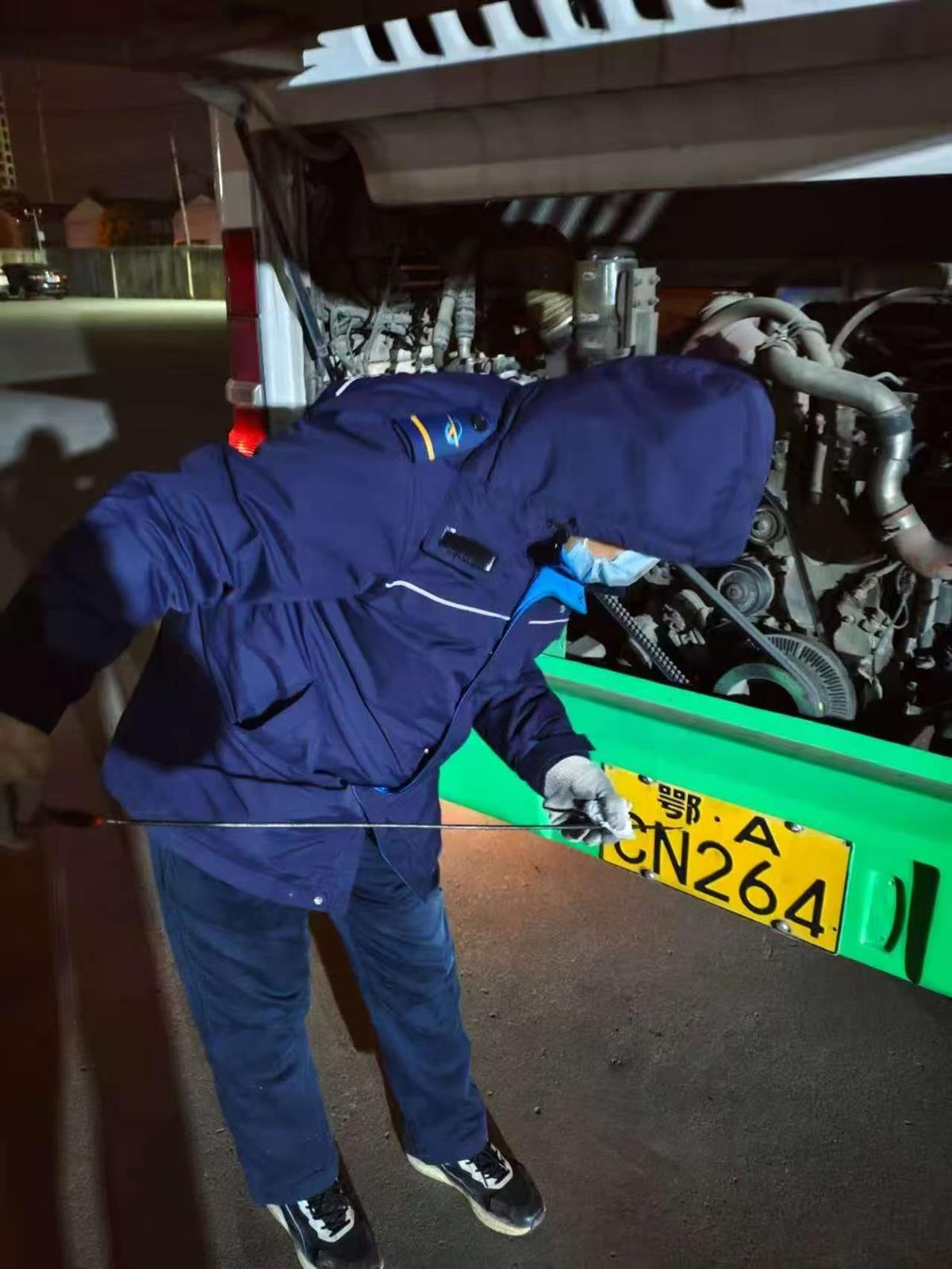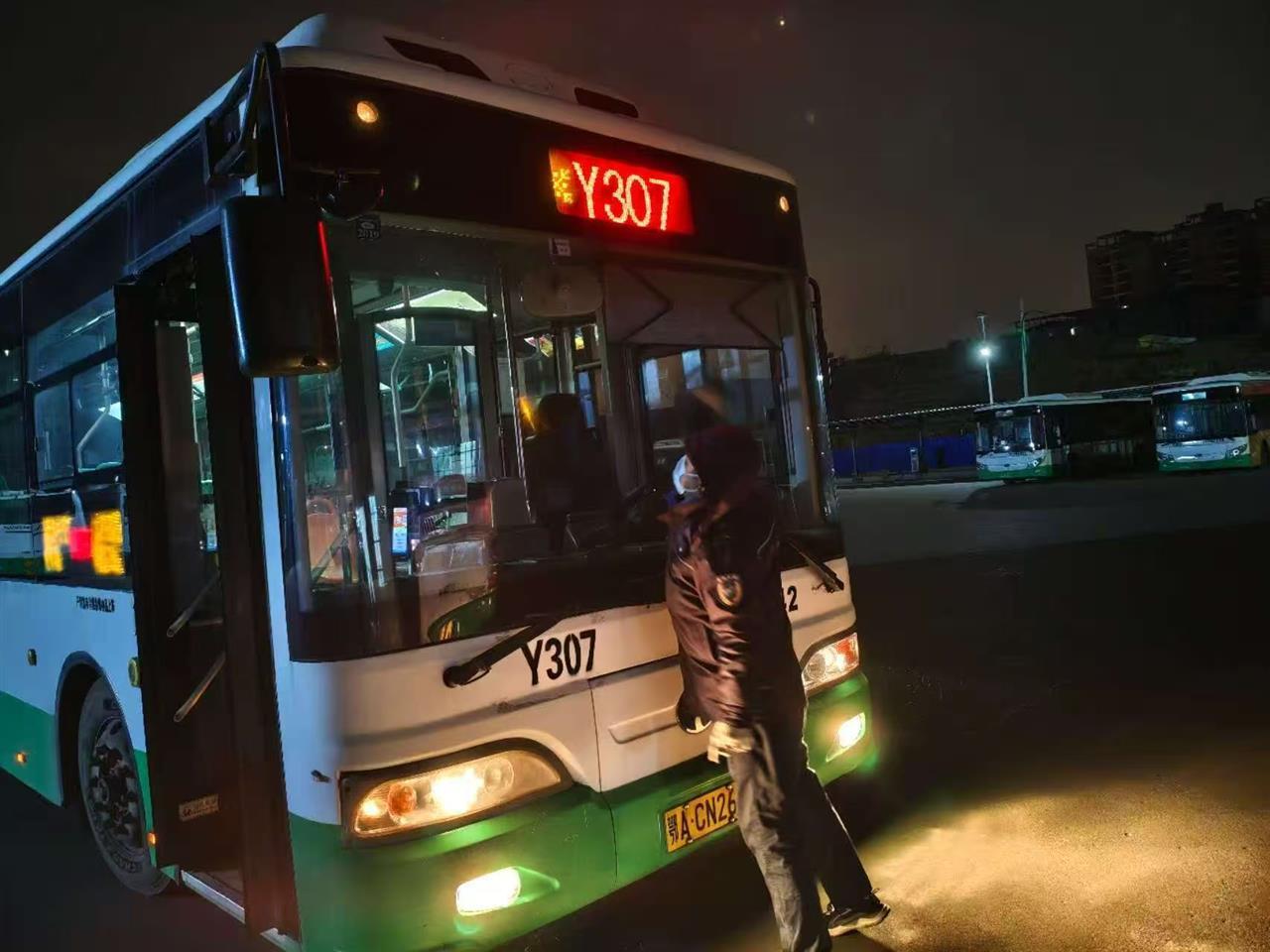 1月19日凌晨4时,探路小队奔赴汉施公路界埠桥、阳光大道、平江大道等易结冰重点路段,开展“拉网式”实地勘察,为早班车提供行车指引。安防小队提前到岗,对每位驾驶员开展“岗前安全叮嘱”,并做好车厢保暖措施。