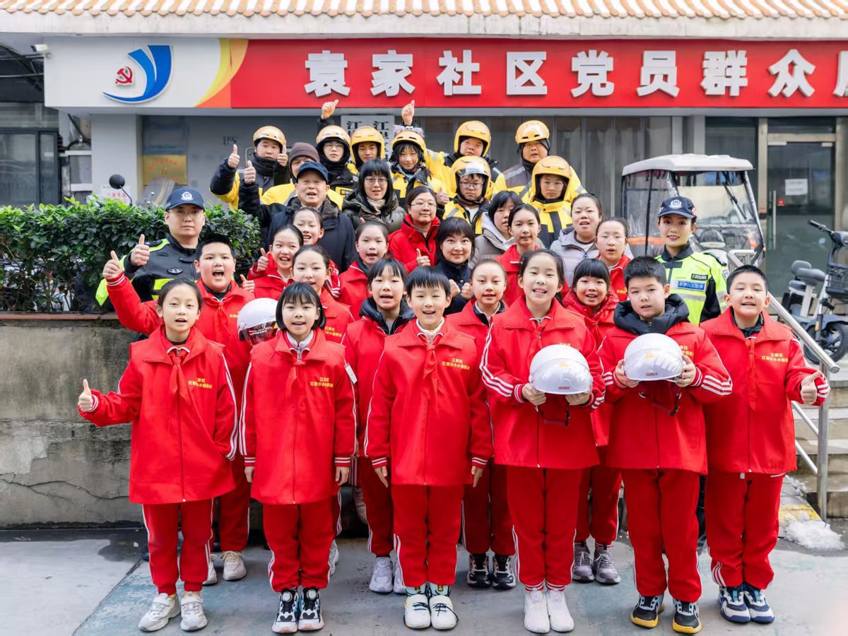 为切实增强辖区居民与外卖骑手交通安全意识,引导青少年树立文明出行理念,1月22日,武汉市公安局江岸区分局交通管理大队联合袁家社区、沈阳路小学及美团骑手,共同开展“小手拉大手 筑牢交通安全防护网”家校社警四方联动安全教育主题活动。江岸交警、沈阳路小学“小小楼栋长”、外卖骑手代表、社区居民及工作人员齐聚袁家社区,通过“教您一个好习惯”特色交通安全课堂、趣味互动游戏及暖心赠“礼”等多元形式,凝聚多方合力织密交通安全防护网。