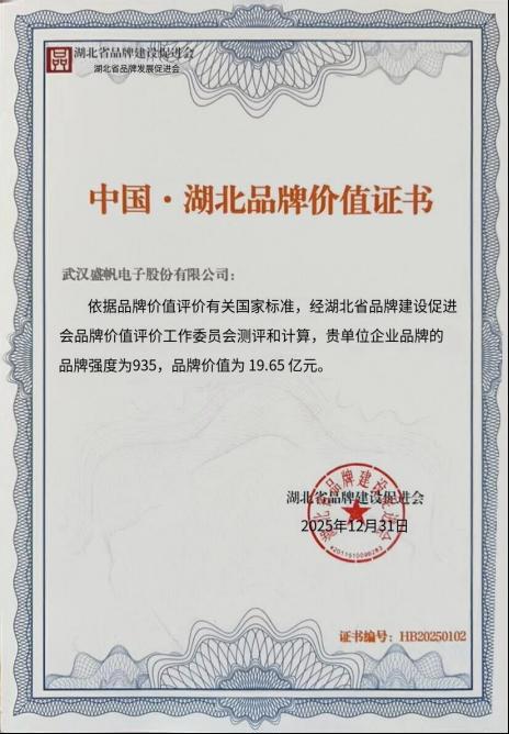 评价结果显示,武汉盛帆电子股份有限公司(以下简称“盛帆股份”)凭借稳健的经营实力、突出的创新能力与良好的品牌口碑,交出了一份亮眼答卷:品牌强度达935,品牌价值飙升至19.65亿元,较往年实现跨越式增长,创历史新高。