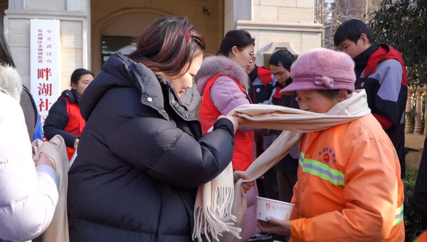 “师傅辛苦了,喝碗热粥暖暖身子!”“这围巾真暖和,太谢谢了!”1月23日上午,武汉市东西湖区金银湖街道畔湖社区工会爱心驿站里暖意融融,笑语不断。为切实发挥工会驿站阵地作用,把温暖送到广大户外工作者的心坎上,社区工会驿站联合多家商户共同开展“冬日送温暖·户外年味浓”关爱户外工作者活动。顺丰速递、京东物流的快递小哥,汉高恒裕公司的环卫工人以及辖区居民欢聚一堂,品腊八粥、迎新春,驿站里洋溢着浓浓的温情与年味。