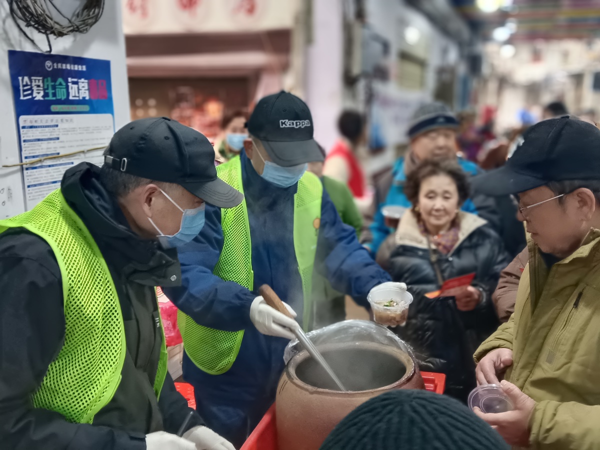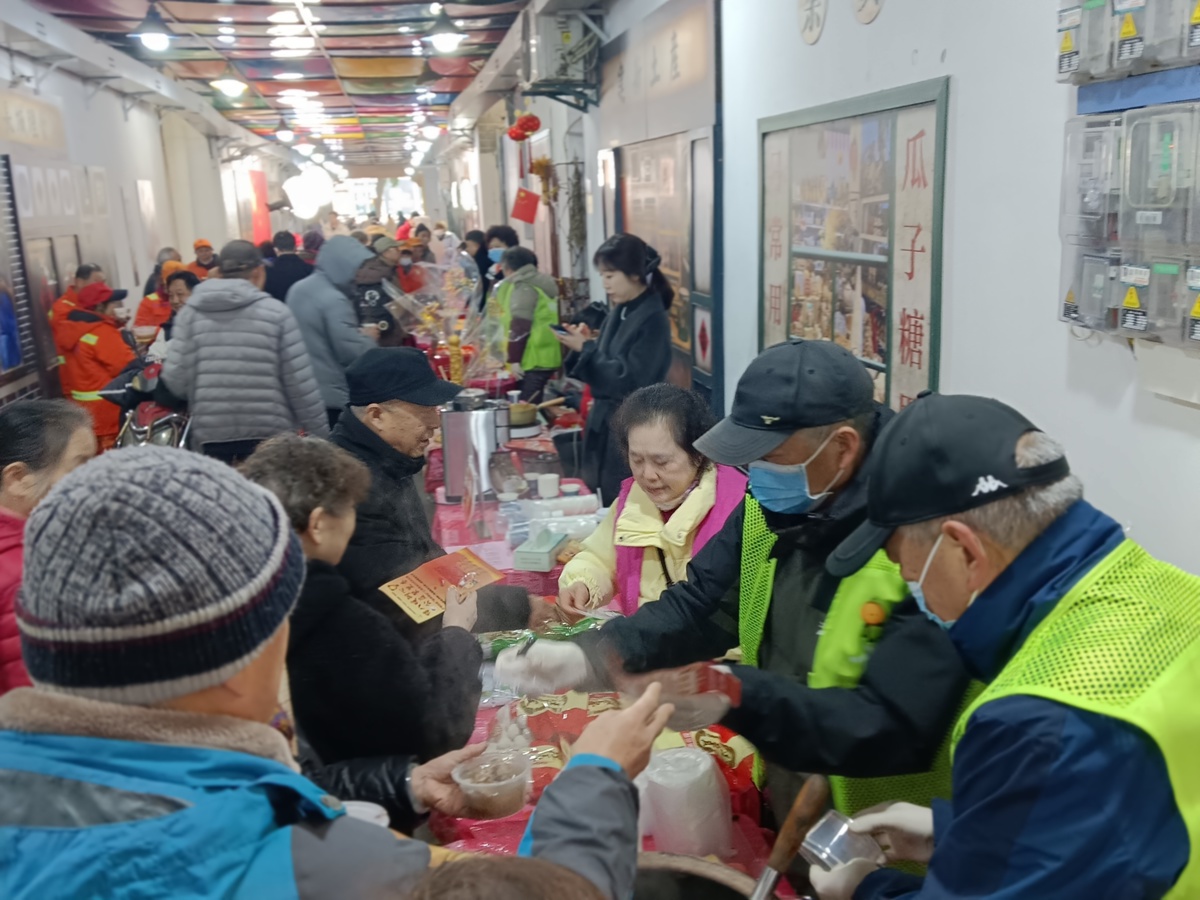 腊八的寒风里,热气裹着米香与藕香满街巷,老人们坐在便民长椅上慢慢品尝,孩子们围着保温桶雀跃等候。“好喝又暖心,在寒风里喝上一碗,浑身都暖和了。”环卫工陈师傅捧着温热的汤碗,展眼舒眉。这份温暖,恰是打铜社区志愿服务的缩影,从解放初期敲了六十多年的“平安锣”,到如今常态化的暖心服务,志愿精神早已融入社区血脉,成为基层治理的“软实力”。
