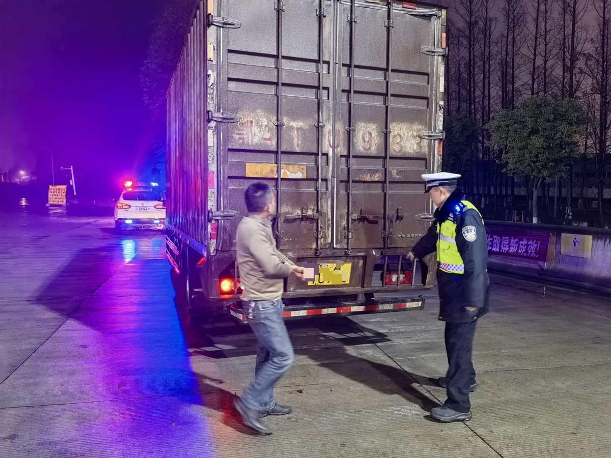 近日,武汉持续低温雨雾,夜间高速公路能见度差,安全风险突出。武汉市公安局交通管理支队二大队立即启动应急预案,强化夜间勤务,重点整治大型货运车辆灯光失效等安全隐患。1月25日夜晚,民警吴创、陶宇在巡逻途中先后发现两辆货车尾灯不亮,采用“护送引导+现场整改+警示教育”妥善处置,得到驾驶员的理解和配合。