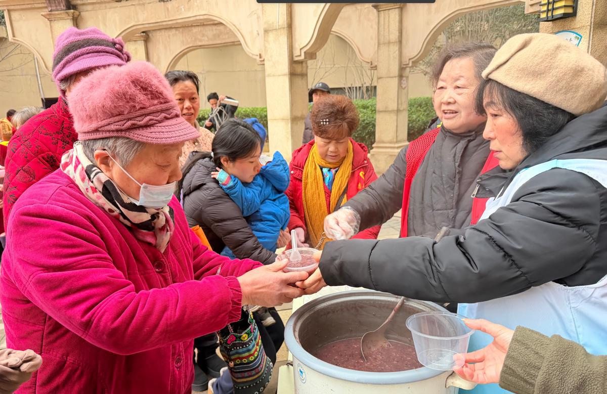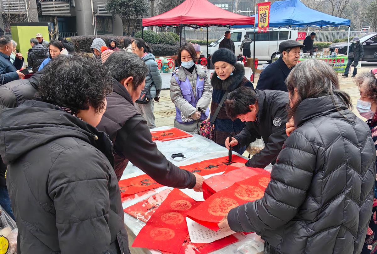由“啄木鸟”志愿服务队志愿者们自发筹备物料,现场熬煮发放腊八粥的爱心点位,共计免费发出200余碗香甜软糯的腊八粥。与此同时,武昌区社区教育学院武锅社区教学点楚风书画社张绍祥老师,在广场上挥毫泼墨书写春联,笔锋游走间,一对对饱含祝福的春联、一个个大红“福”字跃然纸上,为大家送上新春的美好祈愿,共计送出春联100余对,让社区处处洋溢着浓浓的年味儿。
