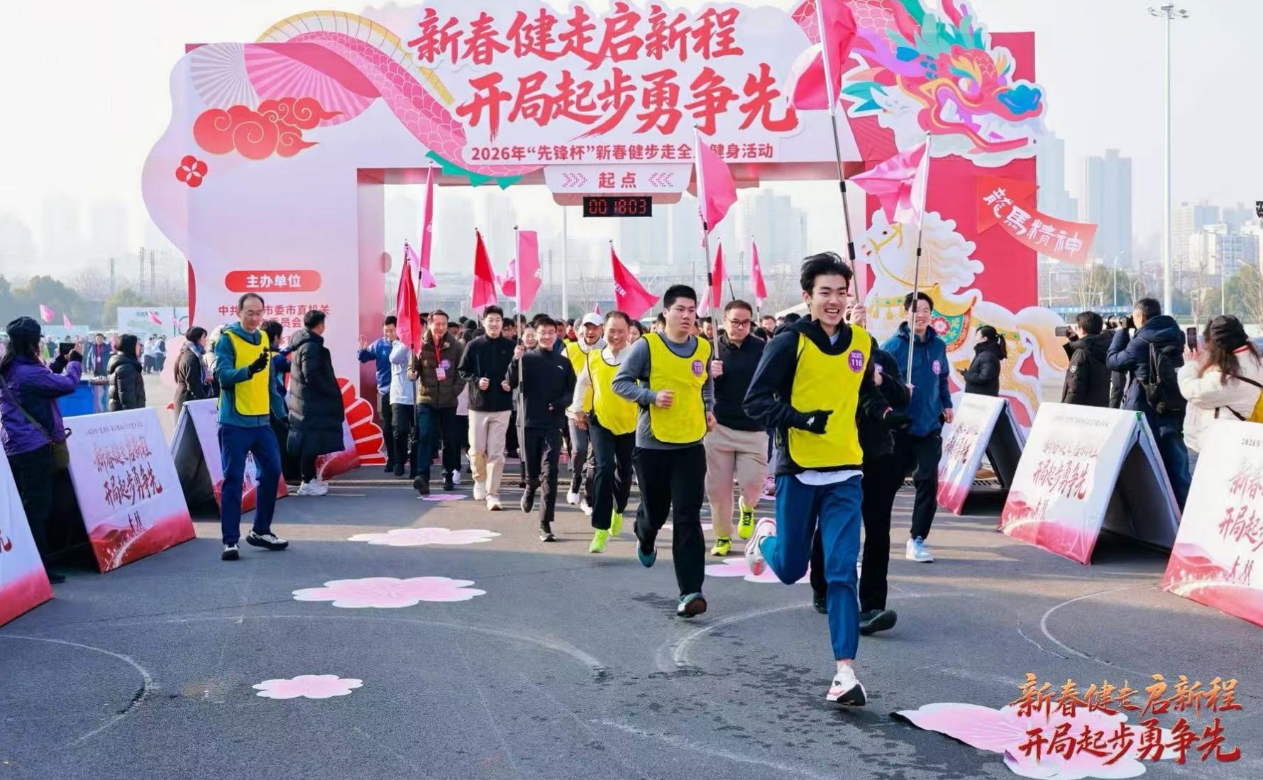 1月23日,武汉市直机关工委联合市体育局在武汉园博园举办2026年“先锋杯”新春健步走全民健身活动,来自市直机关的73支代表队近800名干部职工参赛。