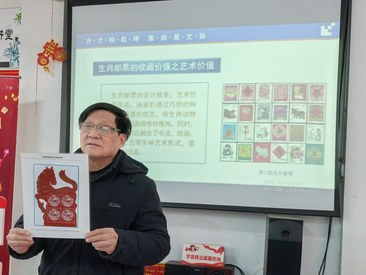 “大家知道这枚猴票背后的故事吗?”活动现场,邮政志愿者的亲切讲述,瞬间吸引了居民们的注意。从一枚枚精巧的生肖邮票切入,志愿者娓娓道来方寸之间如何融入剪纸、刺绣等传统技艺,又如何拥抱卡通、动漫等时尚元素,邮票不仅是邮资凭证,更成为流动的“国家名片”和“文化橱窗”。
