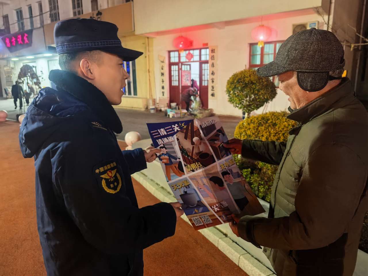 在蔡甸区,巡防组走进滨江国际小区开展消防安全集中夜巡行动。巡防组上门入户,耐心向居民尤其是老年群体普及消防安全知识,并将消防宣传海报张贴在楼道入口、宣传栏等醒目位置。结合家庭火灾特点,巡防组用通俗易懂的语言,重点向居民强调“三清三关”、电气线路安全、厨房用火注意事项等内容。通过“接地气”的交流方式,让消防安全知识真正入脑入心,为居民平安过冬筑牢安全屏障。