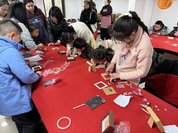 巧手创福区则吸引了众多居民尤其是小朋友们的参与,在专业老师的指导下,大家专注学习錾刻技艺,亲手制作“小马”、元宝等富有年味的造型,既寄托了美好的新春心愿,也在动手实践中体验了传统手工艺的乐趣。一件件精致的手工作品,成为居民们专属的新春纪念。