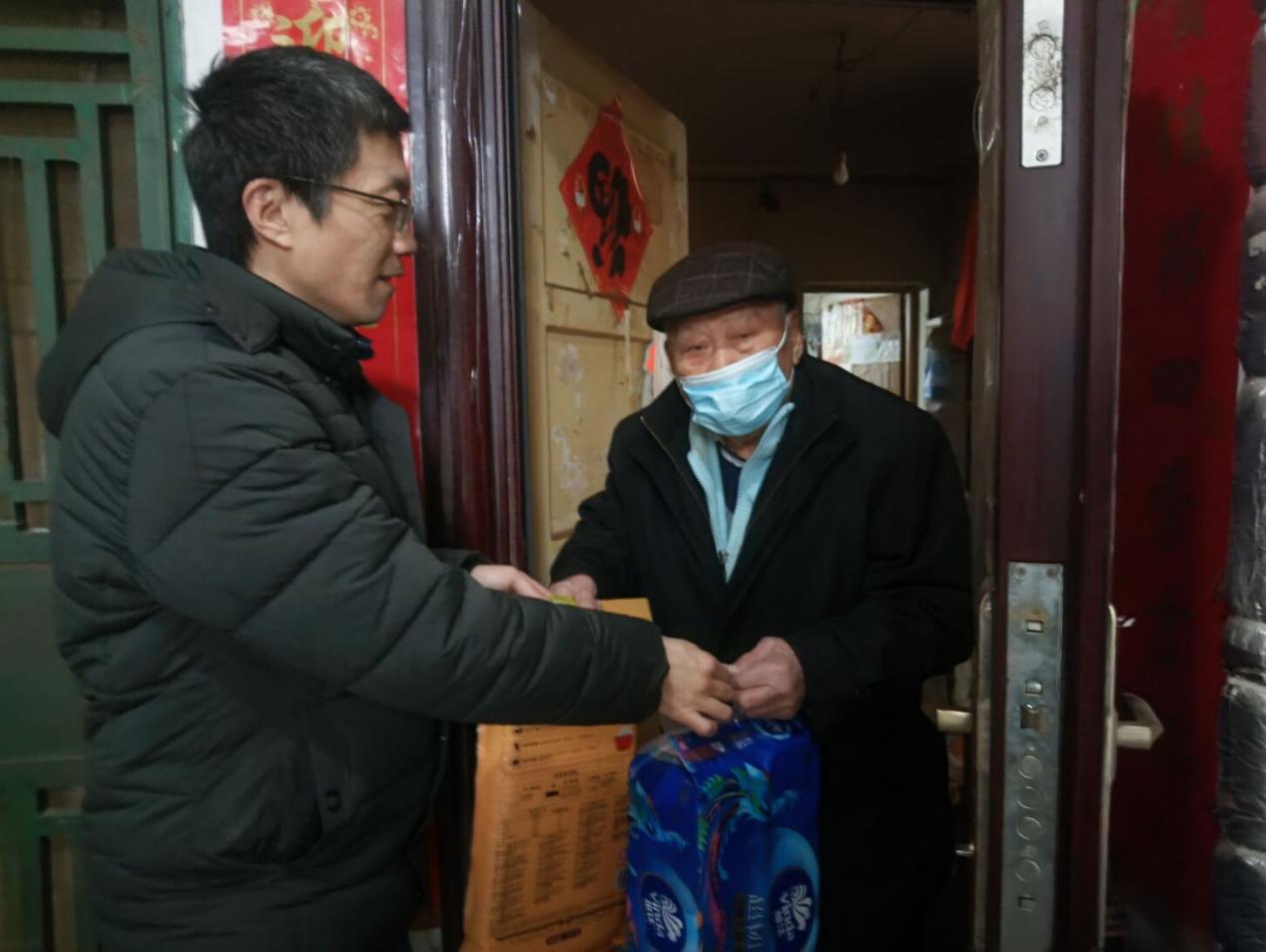 活动中,社区工作人员采取集中分发与上门走访相结合的方式,确保关怀全覆盖。除了在公共区域集中对困难居民有序发放慰问品外,对于行动不便、高龄独居的家庭,工作人员则手提物资,逐户敲门,将温暖直接送到家中。