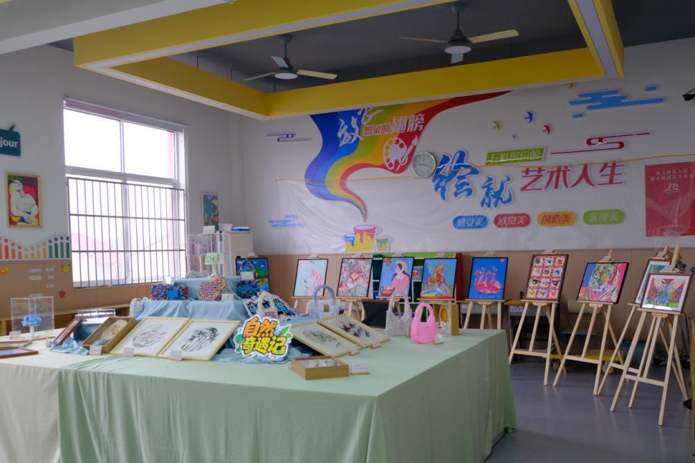 现场集中展示了由特殊学生与普通学生共同创作的艺术作品,涵盖绘画、手工黏土、手工串珠包、竹编扇等丰富形式。江夏区红十字会、湖北生态学院等校内外多方代表齐聚一堂,共同见证并参与这场以艺术为桥、以爱心为契的美好之约。