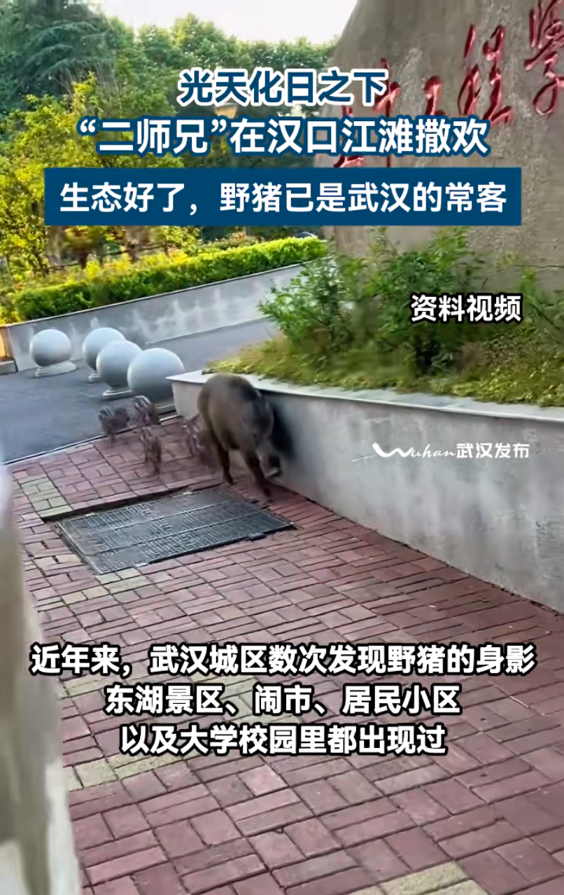 此前相关报道中提到,华中农业大学副教授李翔介绍,在武汉,想要偶遇野猪也不是难事。他透露,黄陂区、蔡甸区是野猪的“常住地”,而江岸区、硚口区、汉阳区等地也偶有它们的身影。