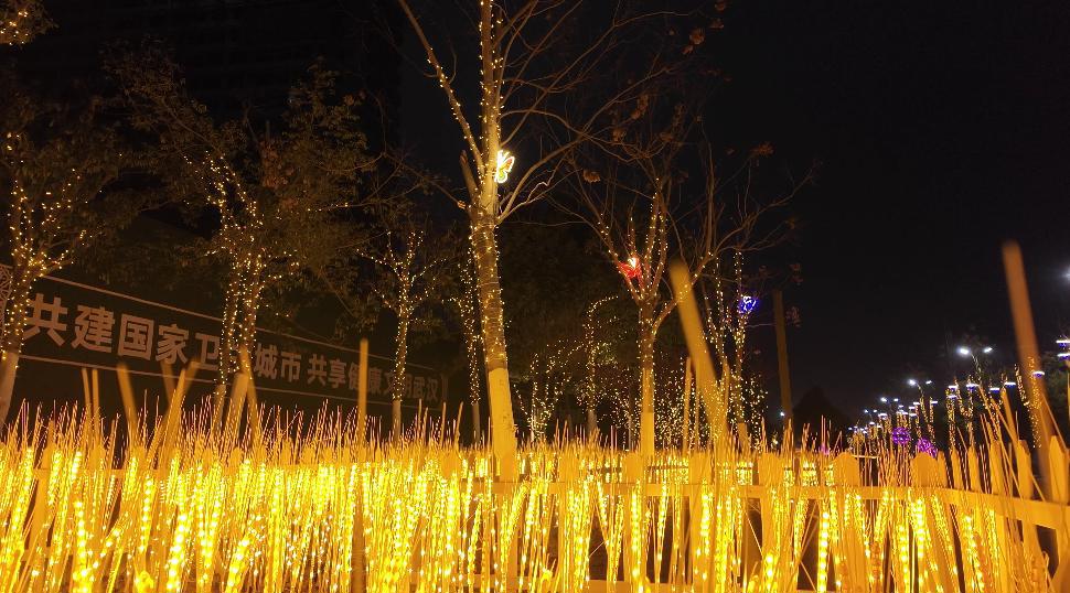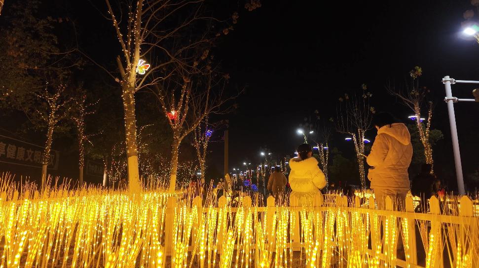 1月28日,新洲区文昌大道沿线宛如披上流光溢彩的霓裳,暖色灯串如星辰般缠绕树梢,草坪间“萤火虫”与“麦穗”灯光点点闪烁,卡通灯组童趣盎然,一盏盏灯光次第亮起,吸引众多市民驻足流连、拍照打卡,浓浓的年味在光影交织中弥漫开来。