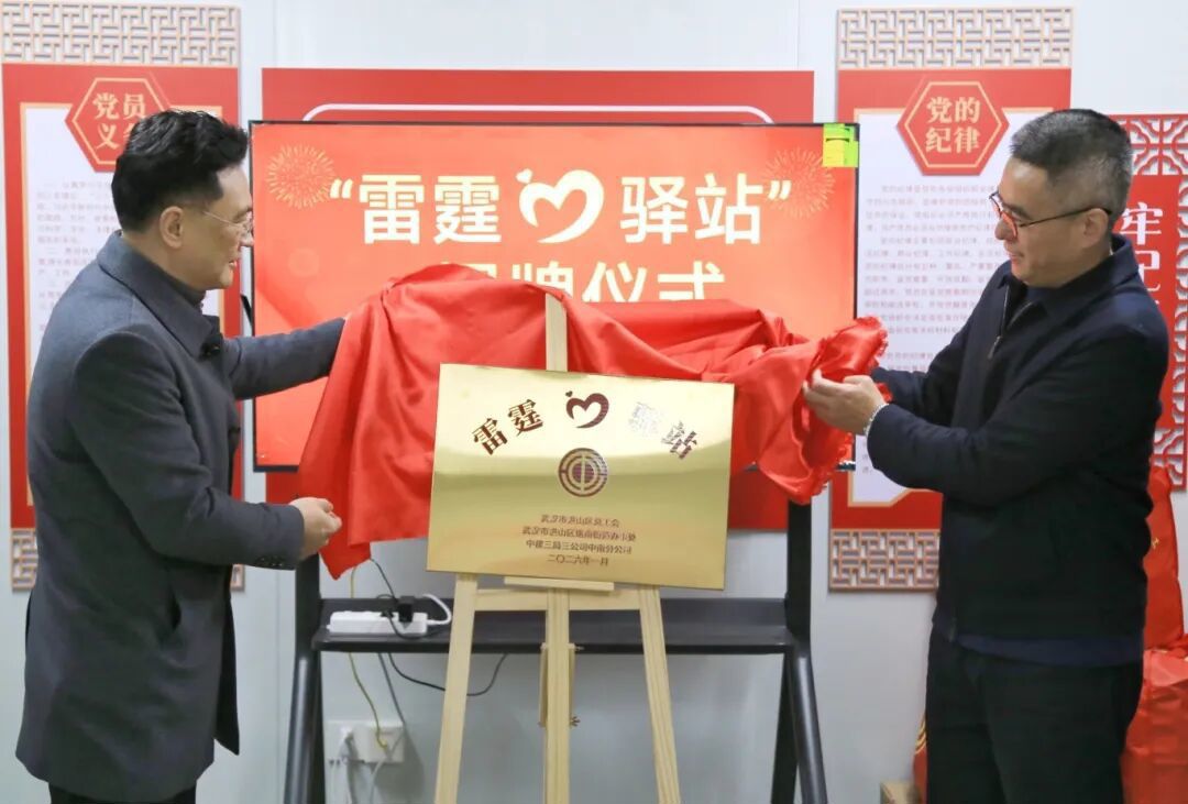 项目部工会负责人重点介绍了项目进展及“雷霆驿站”建设情况。洪山环大学创新创业产业园是洪山区环大学创新发展带的重点工程。该驿站由区总工会、珞南街道、中建三局三公司中南分公司打造,由集装箱改造而成,内部配备书架、烘干机、微波炉、充电宝、热水器等便民设施,主要为建筑工人、环卫工人、快递员、交警、网约车司机等户外劳动者提供便利,成为他们工作中的“暖心补给站”。