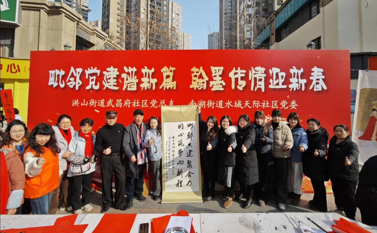 2月2日,武昌区南湖街道水域天际社区党委与洪山区洪山街道武昌府社区党总支携手,共同开展“毗邻党建谱新篇,翰墨传情迎新春”主题活动,为居民们送上了一场文化盛宴与新春祝福。