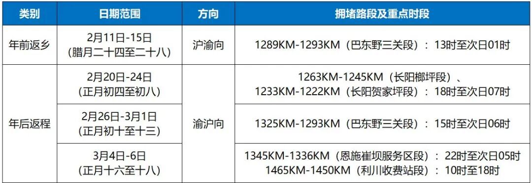 2月3日,湖北交警特别提醒川渝亲友:这段路驾驶环境复杂,尤其春运期间客货车流高度密集,行车风险高。在历年春运往返高峰期间,该路段易形成长时间、长距离的拥堵和缓行。