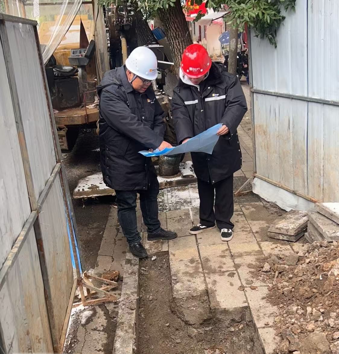 现场项目负责人介绍,为了不影响周边商户经营和居民出行,施工团队采用分段围挡、错峰施工的方式,最大限度降低施工影响。在开挖沟槽时,技术人员全程旁站,精准定位原有管线,避免了多次安全风险。