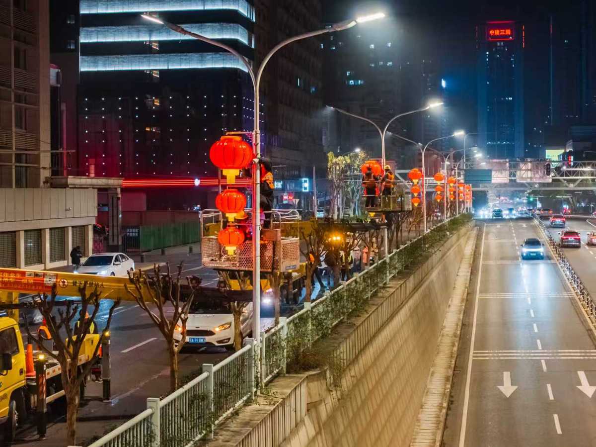 湖北日报讯(记者张竞恒、通讯员费帆、李可欣)大红灯笼高高挂,喜气洋洋迎新春。随着2026年马年春节的脚步日益临近,武汉市武昌区节日氛围营造工作正式启动。2月3日凌晨,市民看到中南路、中北路、八一路及中山路武昌火车站周边等道路的灯笼和中国结悬挂施工悄然拉开帷幕。