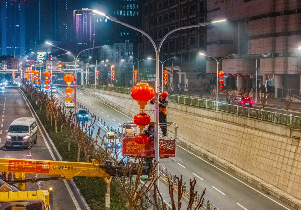 2月3日凌晨,在武昌中南路、中北路、八一路及中山路武昌火车站周边等道路上,大红灯笼和中国结已高高挂起。据武昌区城管执法局相关负责人介绍,武昌区将在全区主次干道、部分桥梁高架、城市窗口等处统一悬挂大红灯笼、中国结等传统民俗装饰。这些充满中国元素的装饰,为市民营造喜庆祥和的节日氛围。