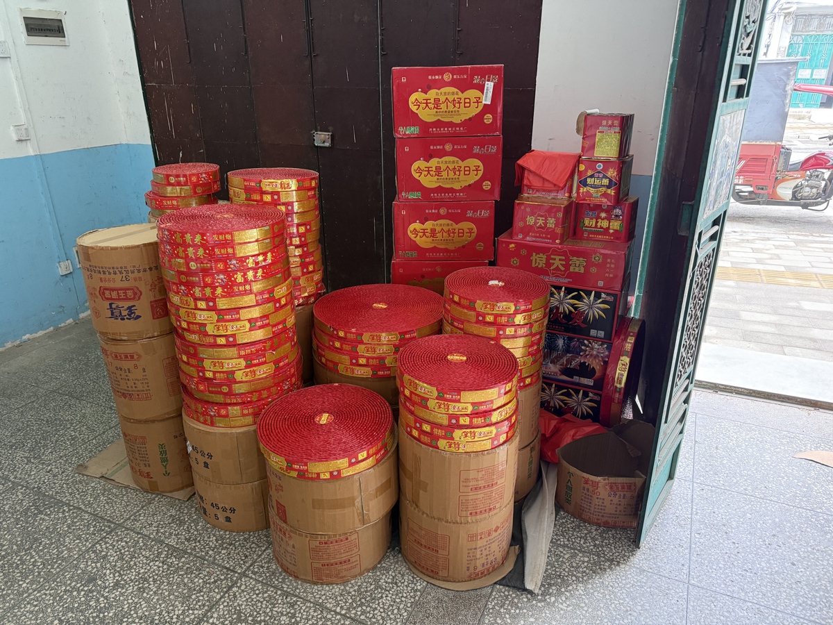 当天上午10时许,民警王安吉巡逻至百业街附近时,惊讶地发现有人提着一挂鞭炮从一家副食店出来。王安吉立即带队进店查看,发现在这家店铺里堆放了十余种、共计315件涉案烟花爆竹。