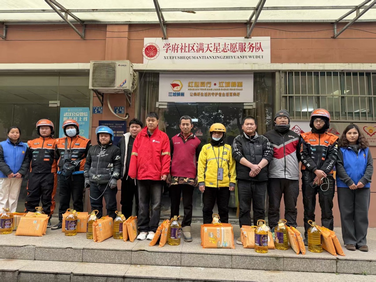 此外,金银湖街道学府社区则将关怀目光投向了新就业群体。社区在户外职工驿站为12位快递员、外卖员和网约车司机送上了米、油等新春慰问品,感谢他们平日里的辛勤付出,并叮嘱他们注意冬季出行安全。