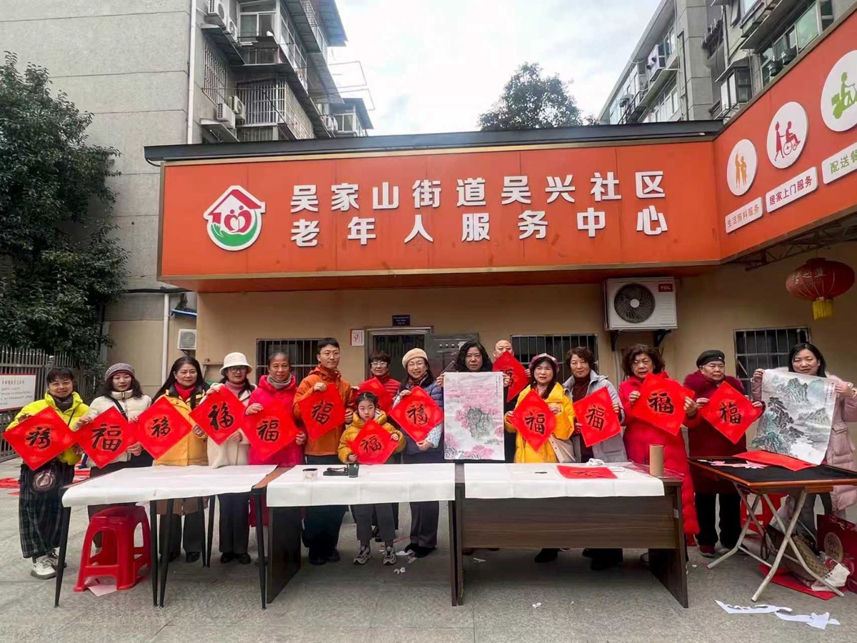 在吴家山街道吴兴社区老年活动中心,一场“墨香暖邻里 福字送万家”公益惠民活动吸引了众多居民。社区联合街道老年大学及辖区书法爱好者,现场挥毫泼墨,书写春联和“福”字。楷、行、隶等多种书体各显神韵,寄托着对新春的美好祝愿。一旁的剪纸体验区也围满了居民,红纸在巧手中变成窗花。活动结束后,社区工作人员还特意将春联和慰问品送到部分高龄、独居老人家中。