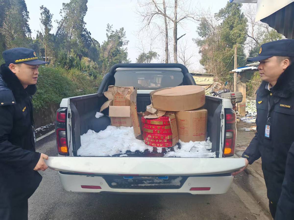 据介绍,2月以来,九峰街道综合执法中心携手九峰派出所,瞄准日间经营高峰期,开展专项联合执法,先后对石门峰300余家商铺、小店、五金铺等开展排查。从货架夹层到库房犄角,凡易藏鞭炮的地方,逐一细查,共计查获非法经营的鞭炮100余挂、烟花若干,所有物品均已依法移交九峰派出所依法处置。