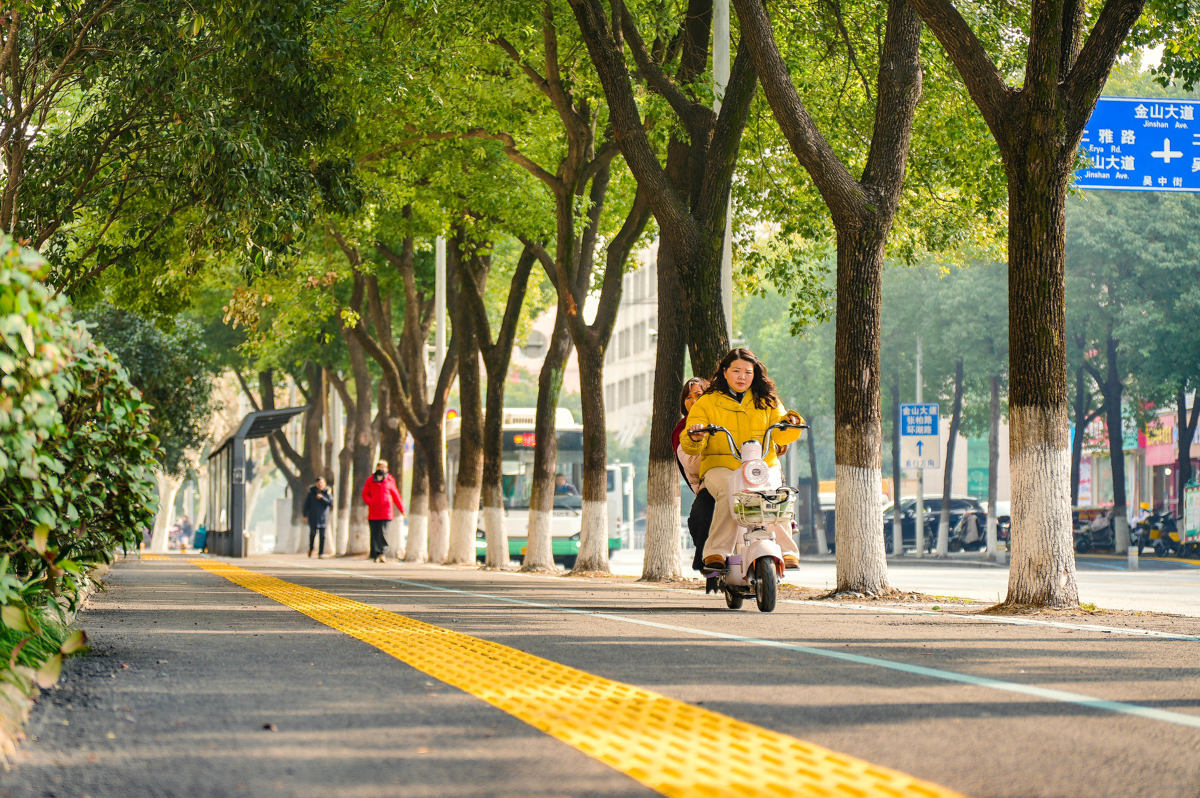 另一个明显变化是,人行道旁多出了一条清晰的非机动车道。过去,吴中街没有专门的非机动车道,人车混行存在隐患。现在,“人非共面”的模式让骑行与步行各自有序,盲道也同步更新,安全系数大幅提升。