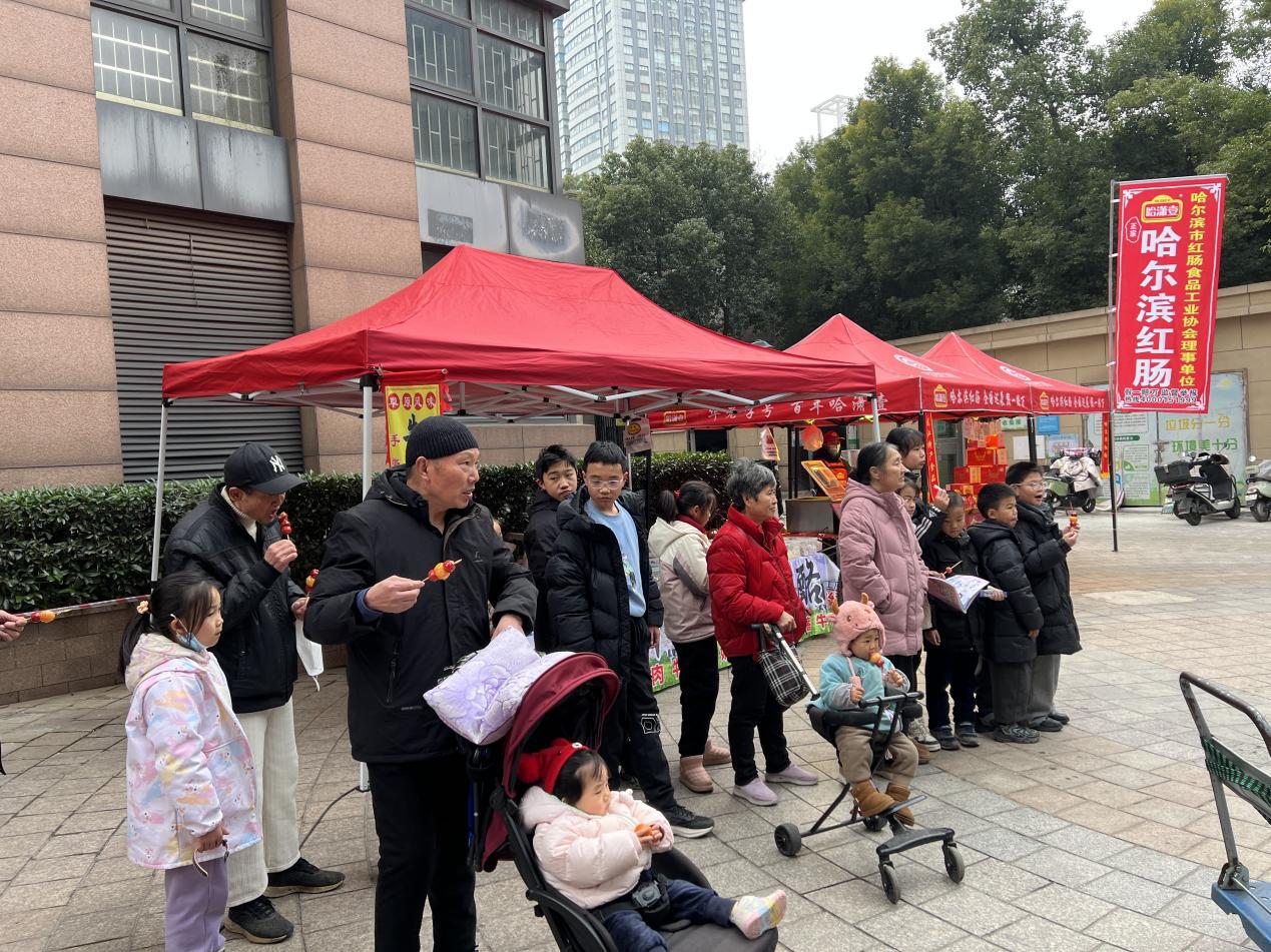 贯穿全天的年货市集,为居民提供了便捷的一站式采购平台。市集汇聚了酱牛肉、藕粉、陈醋、红肠、炸肉圆等来自各地的特色年货与地道风味产品。居民们穿梭于各摊位间,精心挑选,将饱含家乡记忆与节日温暖的年货装入篮中,为即将到来的团圆佳节做好准备。