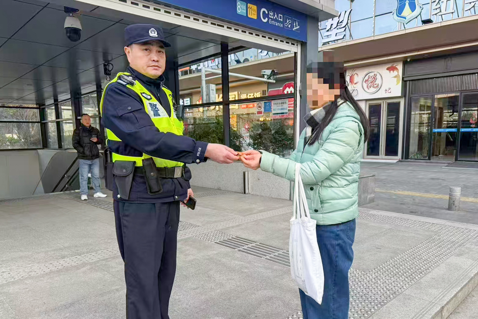 近日,一名乘客不慎将价值2万元的“传家宝”金手镯遗失。武汉轨道民警接到求助后,迅速调看监控寻找,2小时就帮乘客寻回了失物。