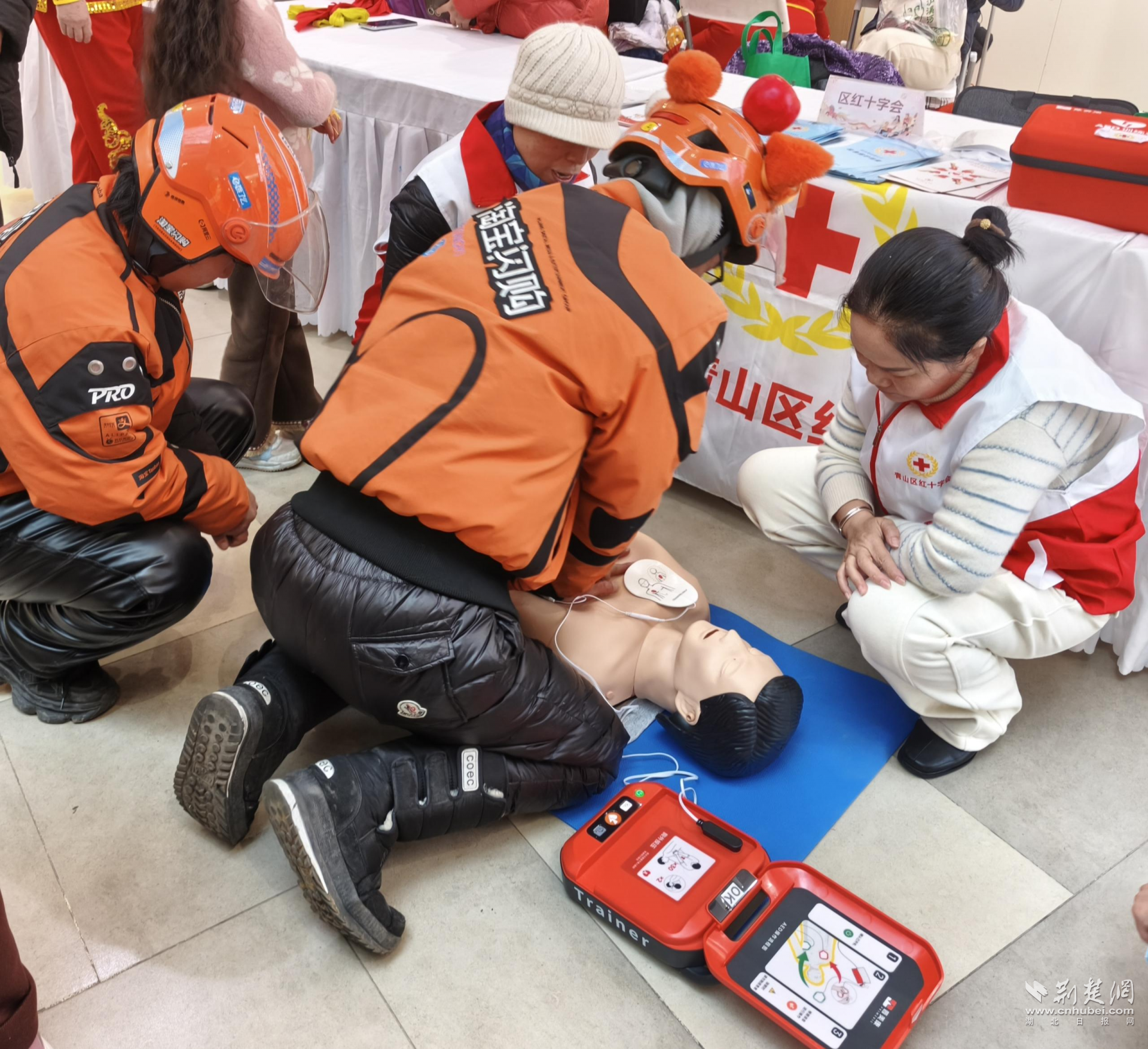 外卖小哥现场进行“应急救护”体验。通讯员供图